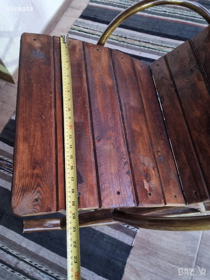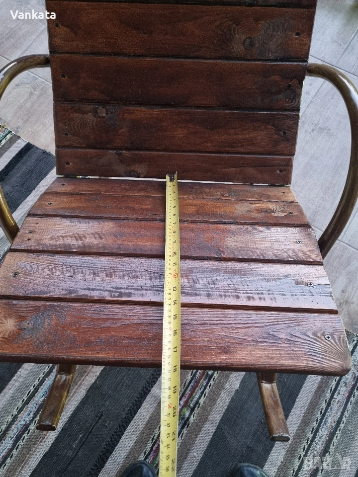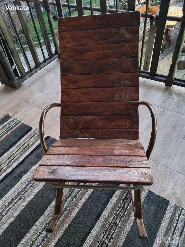 Люлеещ стол. Основа метал - седалка и облегалка дърво. Подходящ за градина, веранда. Размери - видни от снимките.