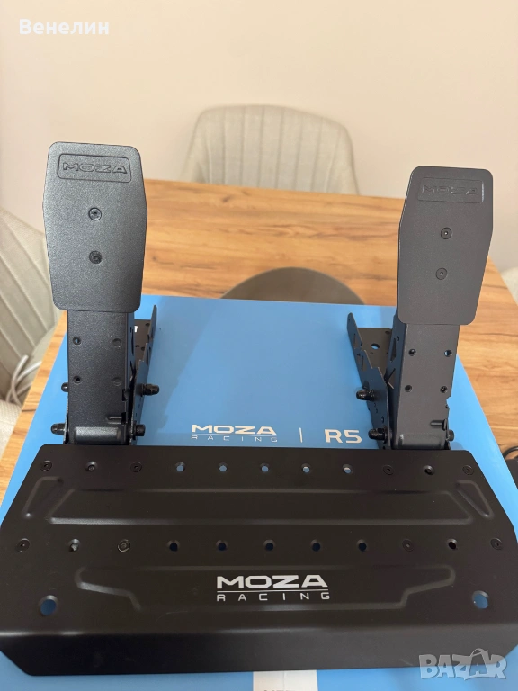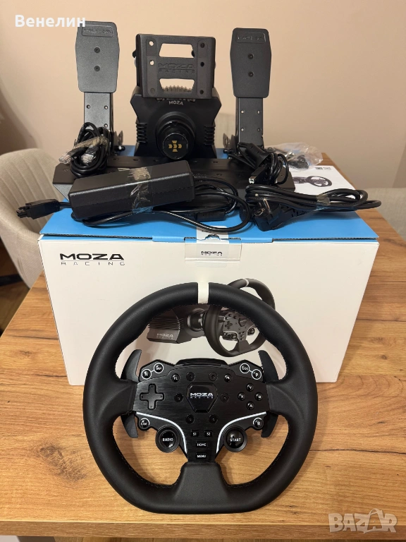 Продавам Moza Racing R5, включващ пълен комплект с волан със стойка, педали, база с 5.5Нm direct drive и всички нужни осигуряващи компоненти за сглобяване, захранване и свръзка между устройствата. Закупен е от Speed Computers през юли 2025 г. Гаранцията не я намирам и е възможно да съм я загубил. Комплектът е ползван общо около 40 часа на Forza Horizon 5 na XBOX. Базата не загрява и работи тихо. Изпращам с преглед, а за гр. Благоевград може и лично предаване.