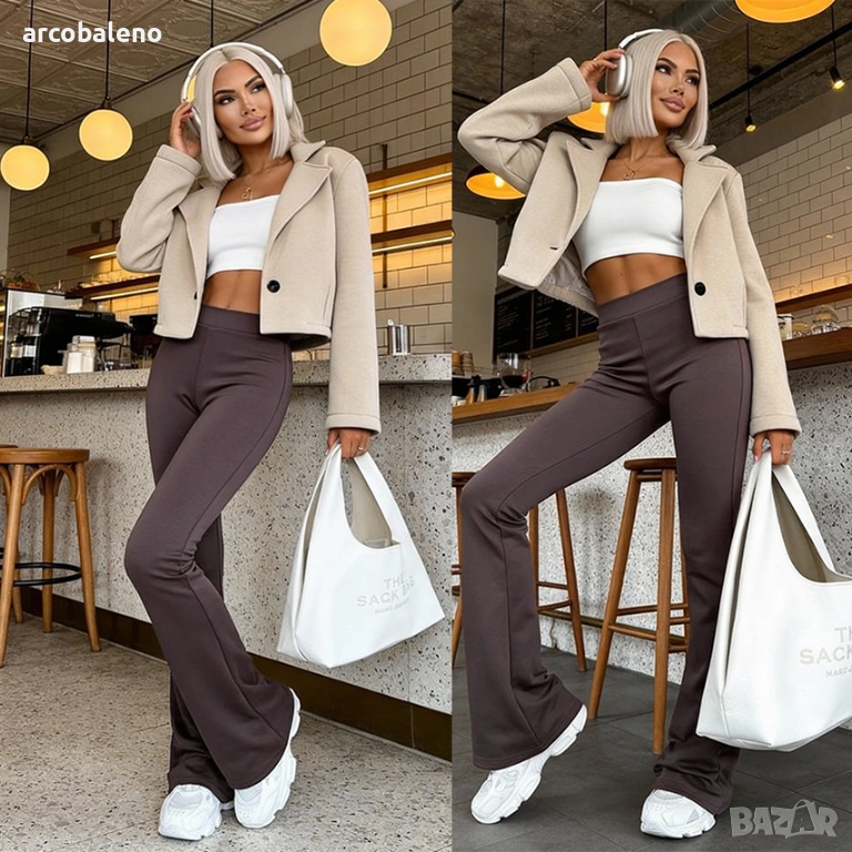 Тези панталони са изработени от изключително мека, първокласна вискозна материя. Кройката им оформя красиво фигурата – разкроените крачоли красиво ги удължават , докато еластичният материал се адаптира към всяка фигура, подчертавайки женствените извивки.