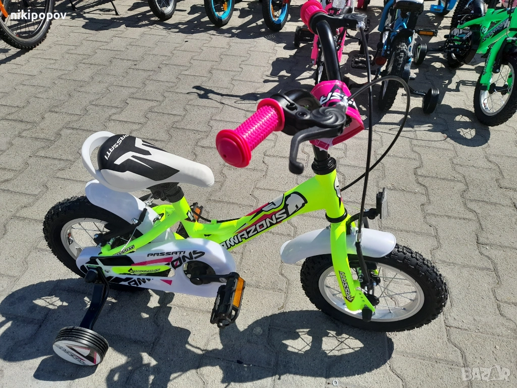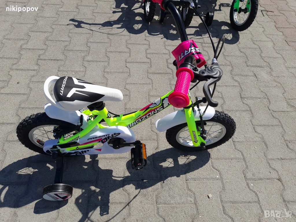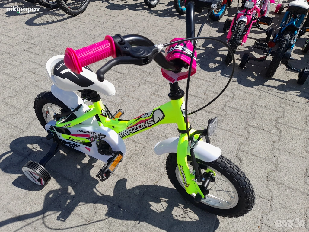 *Детският велосипед на Passati е един прекрасен избор за децата между 2 и 4-годишна възраст и височина от 80 до 100см. Може да се използва от деца, които още не са се научили да карат без помощни колела. Рамката е метална. Велосипедът е с алуминиеви капли и алуминиев държач на кормилото. Разполага с предна и задна V-brake спирачка, пластмасови калници и предпазител на веригата.