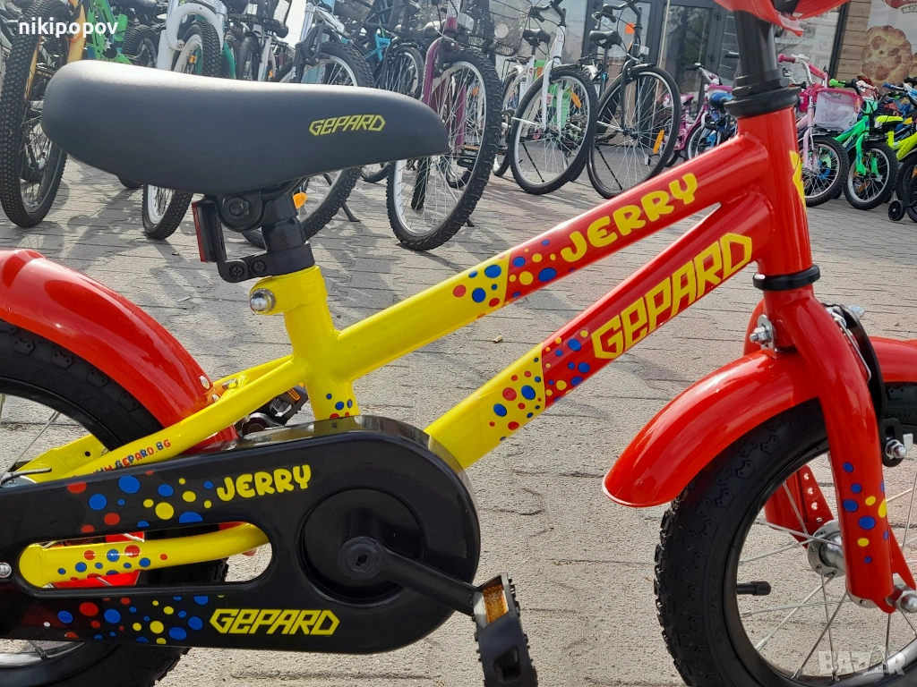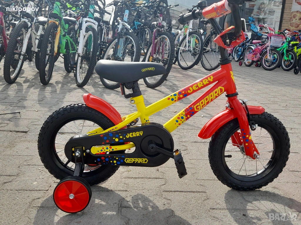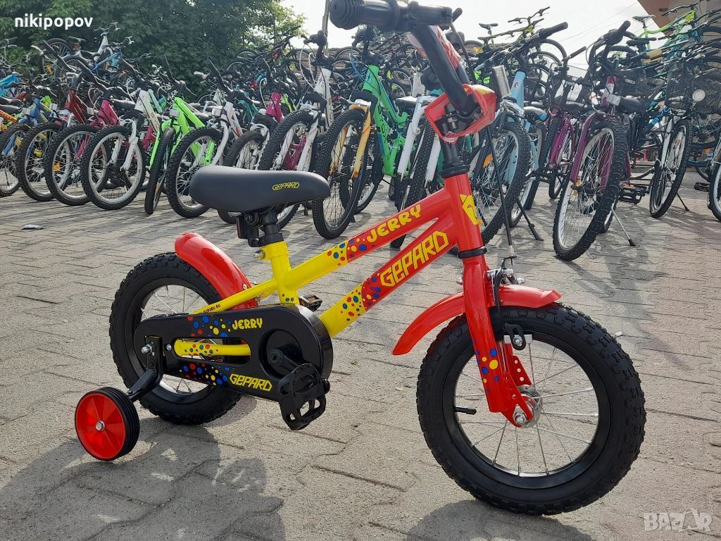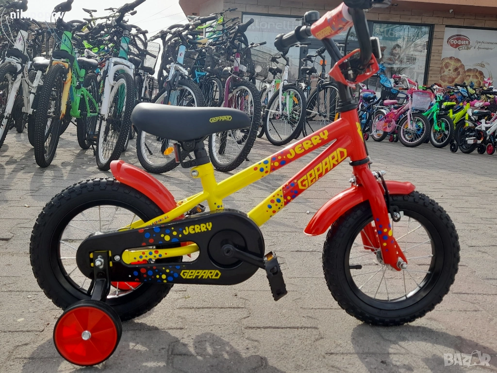 *Детският велосипед на Gepard е един прекрасен избор за децата между 2 и 4-годишна възраст и височина от 80 до 100см. Може да се използва от деца, които още не са се научили да карат без помощни колела. Рамката е метална. Велосипедът е с алуминиеви капли и алуминиев държач на кормилото. Разполага с предна и задна спирачка, пластмасови калници и предпазител на веригата.