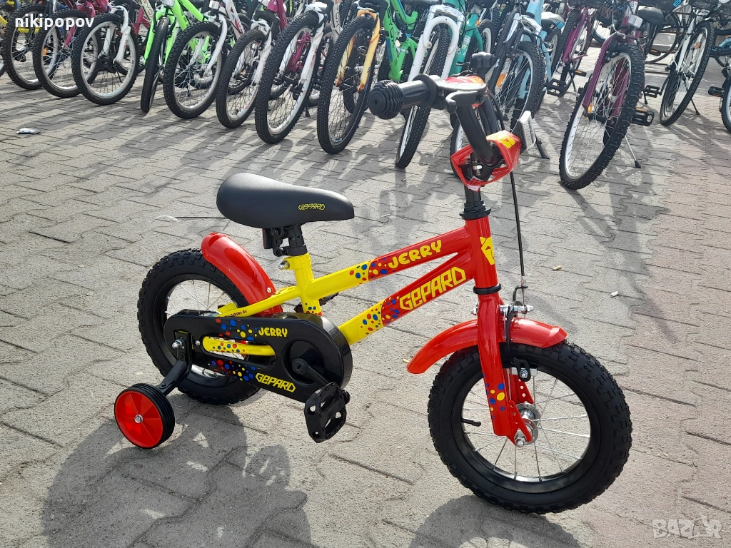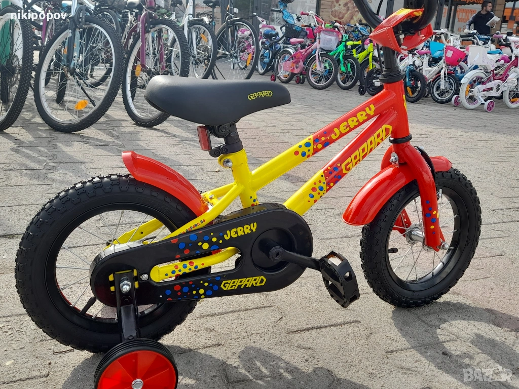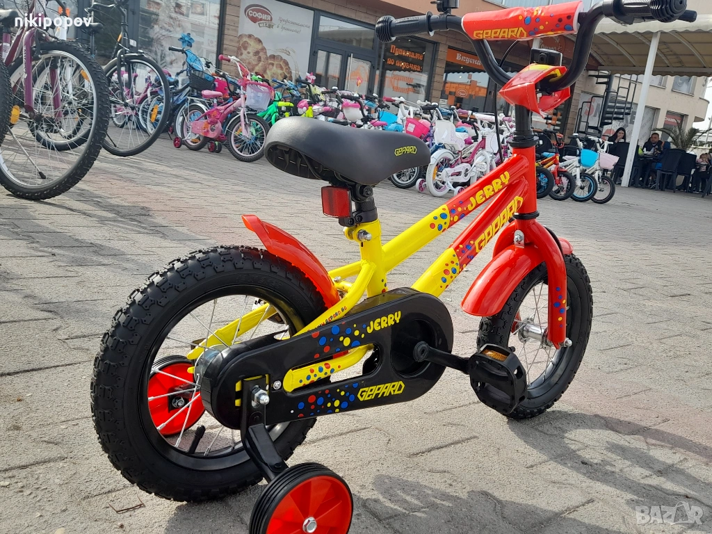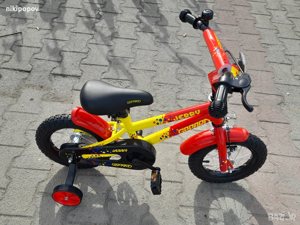 *Детският велосипед на Gepard е един прекрасен избор за децата между 2 и 4-годишна възраст и височина от 80 до 100см. Може да се използва от деца, които още не са се научили да карат без помощни колела. Рамката е метална. Велосипедът е с алуминиеви капли и алуминиев държач на кормилото. Разполага с предна и задна спирачка, пластмасови калници и предпазител на веригата.