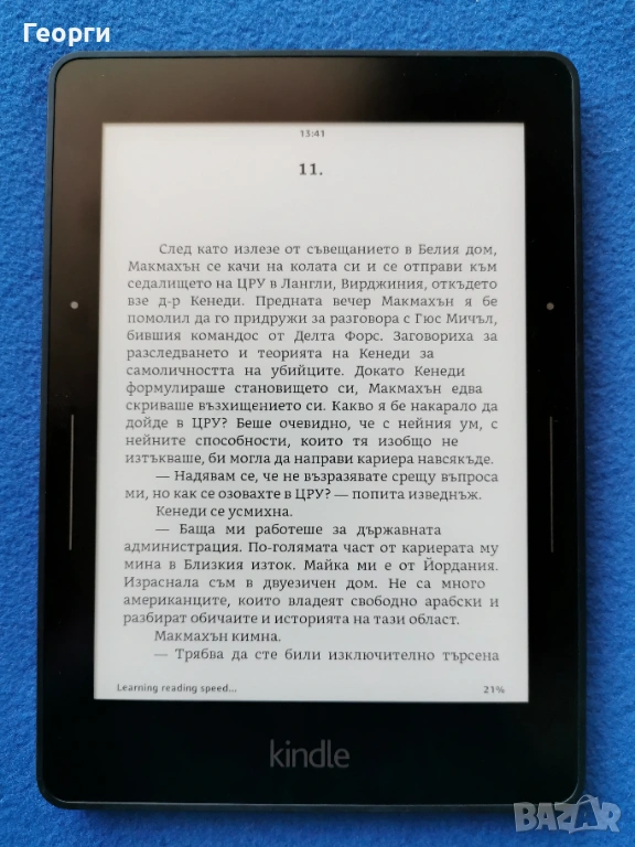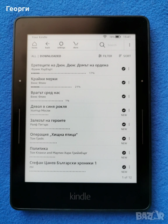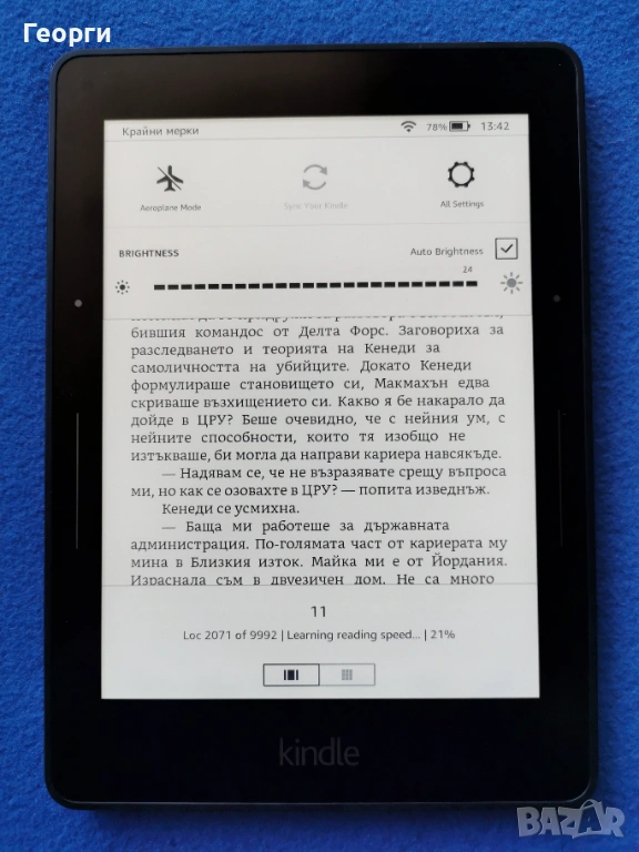 Kindle voyage , Работи добре, всичко както трябва без проблеми. 6" екран с подсветка с 24 нива на яркостта. Най-високата резолюция 300ppi която дава усещане за истинска хартия.