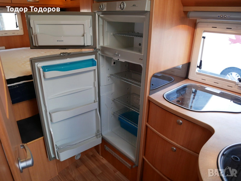 Кухня: L-образна кухня, често определяна като една от най-добрите в класа си, оборудвана с 3 газови котлона, комбинирана фурна с грил и голям 175-литров хладилник с отделен фризер. . Фурна на газ