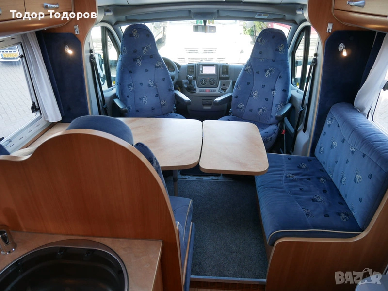 Дневна зона: Предна трапезария със завъртащи се седалки на кабината, която може да се трансформира в единично легло.