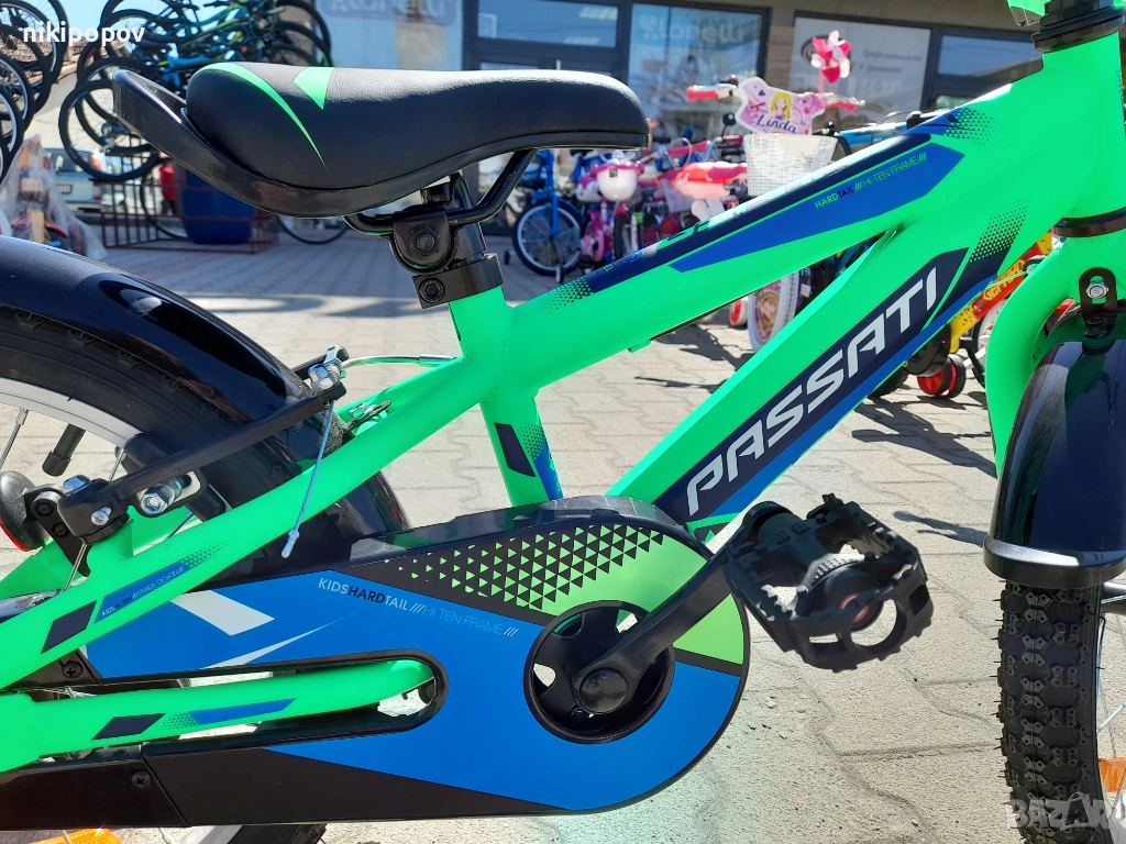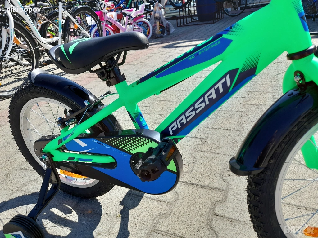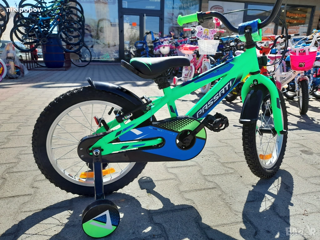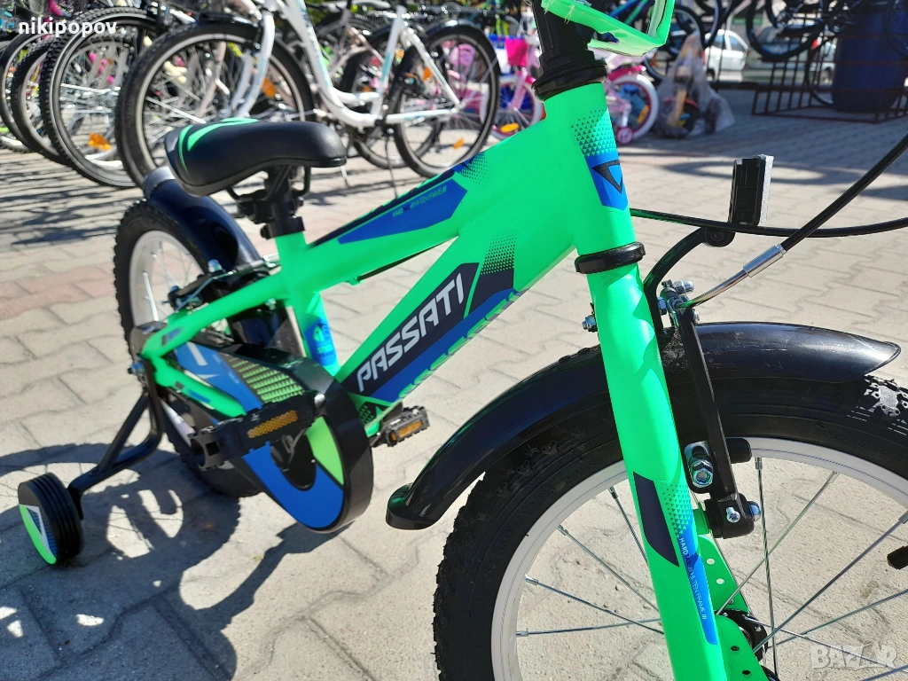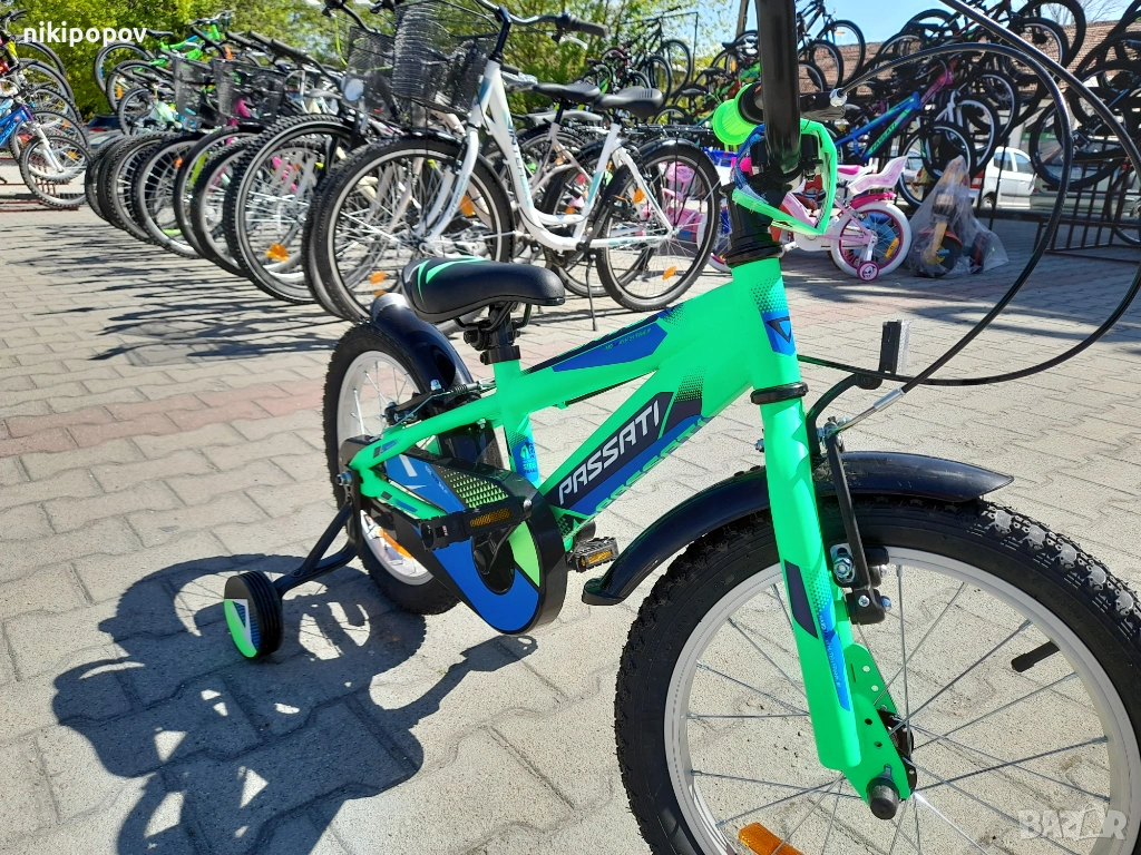 *Детският велосипед на Passati е един прекрасен избор за децата между 4 и 6-годишна възраст и височина от 100 до 120см. Возилото е снабдено с помощни колела, посредством които детето ще усъвършенства умението си да балансира на две гуми неусетно, докато се забавлява.