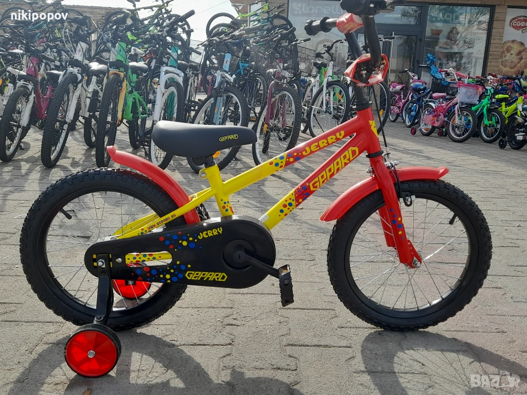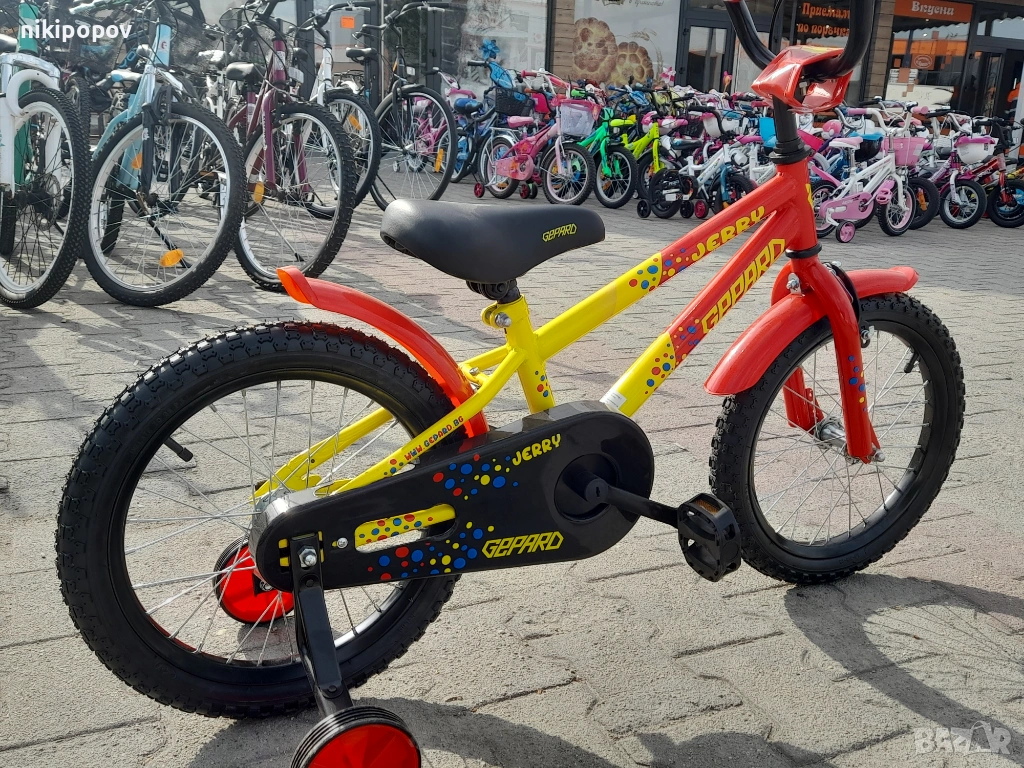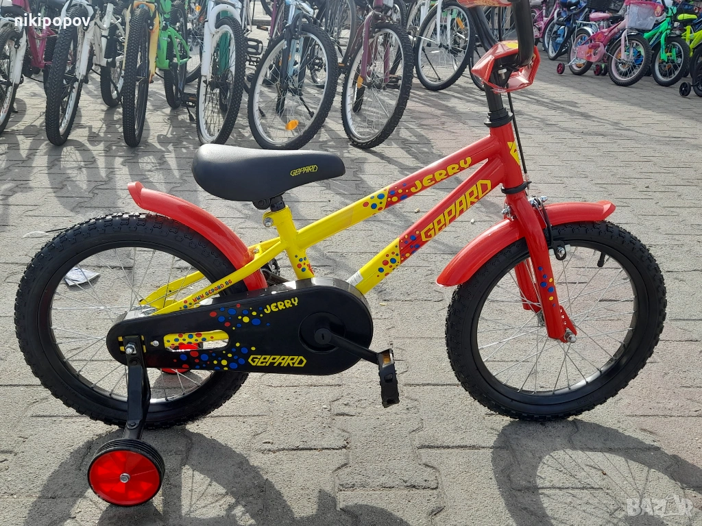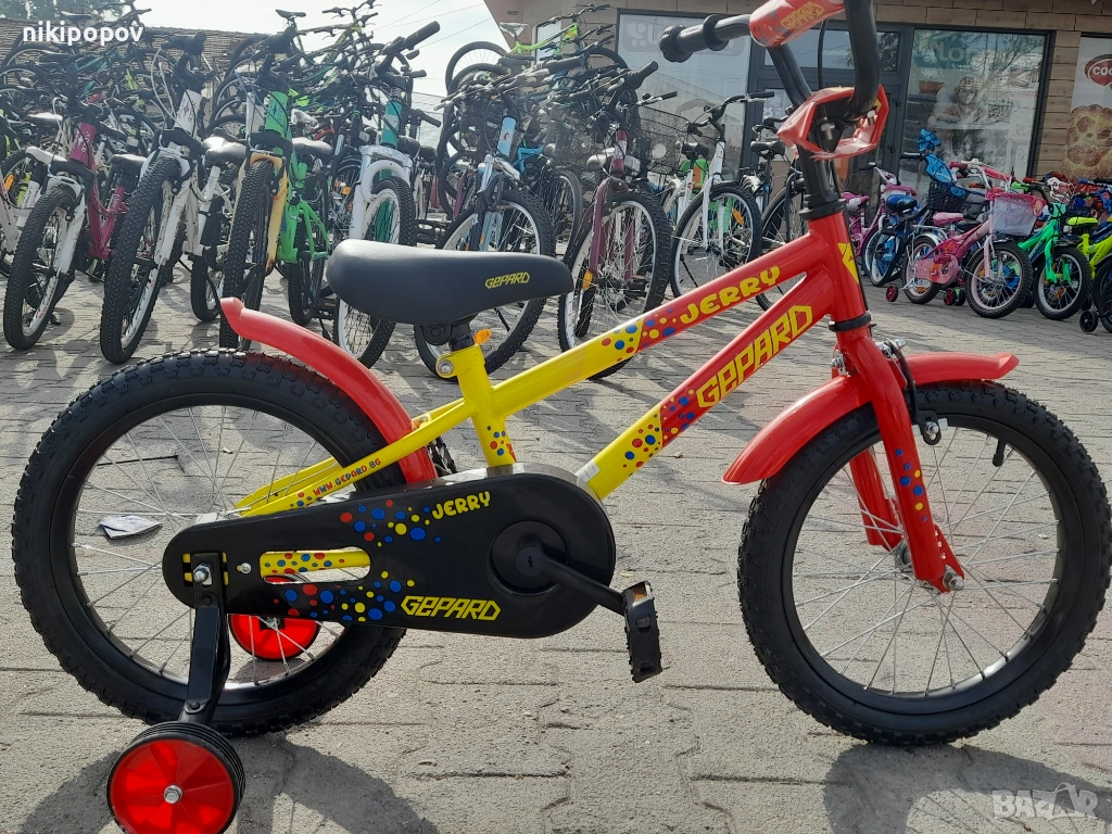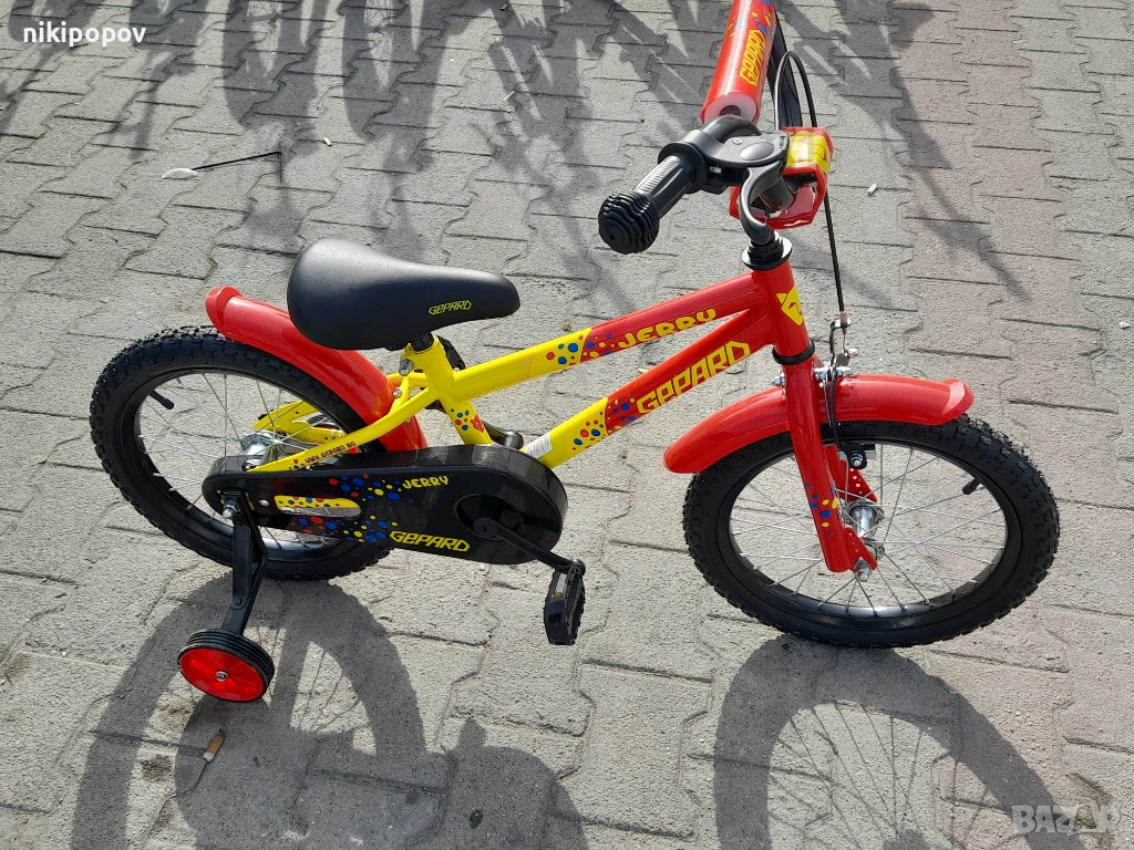 *Детският велосипед на Gepard е един прекрасен избор за децата между 4 и 6-годишна възраст и височина от 100 до 120см. Возилото е снабдено с помощни колела, посредством които детето ще усъвършенства умението си да балансира на две гуми неусетно, докато се забавлява.