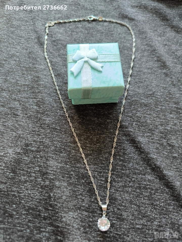 Сребърно колие с бял цирконии → Обява 53759336