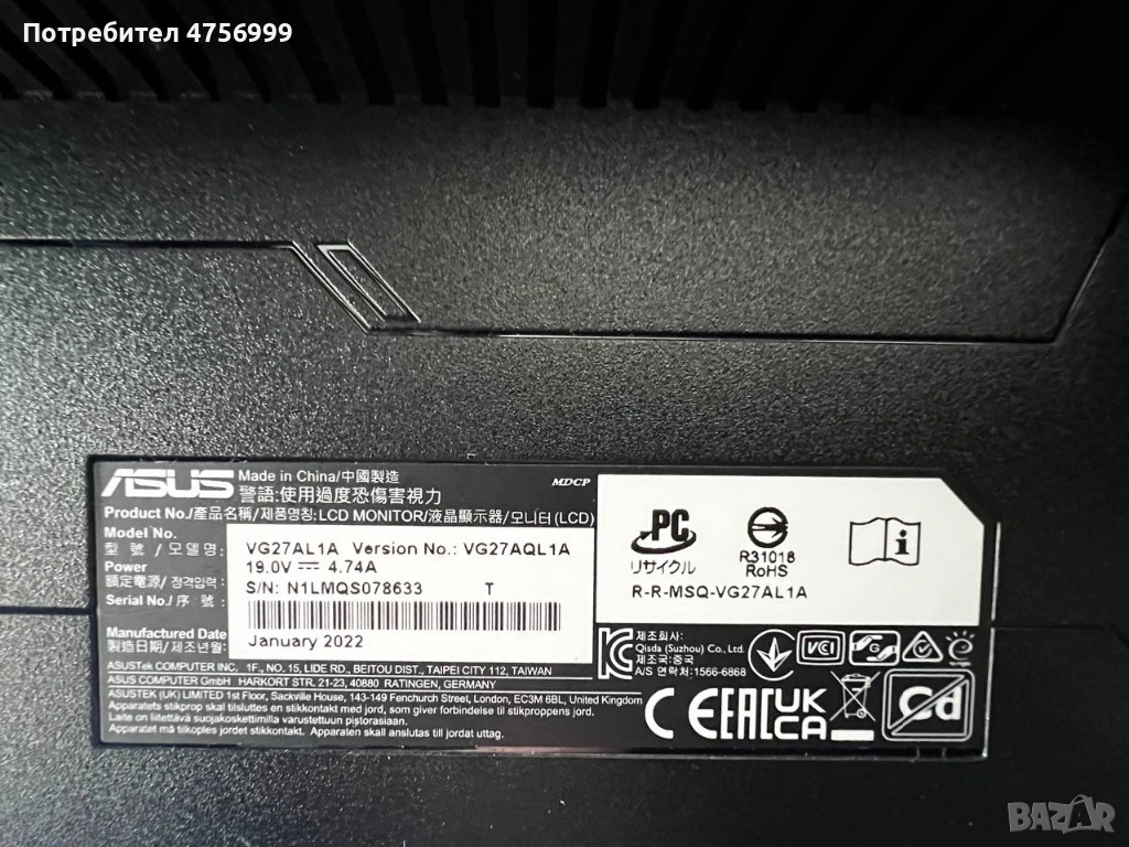 ASUS TUF Gaming VG27AQL1A в много добро състояние.