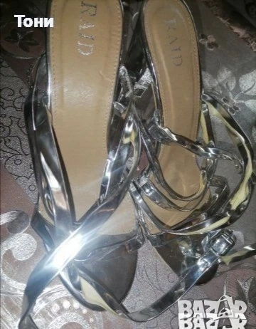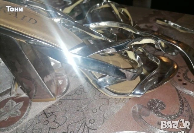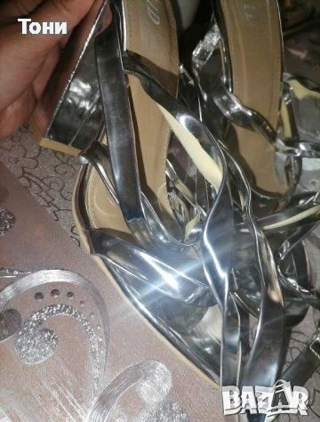 Нови Сребристи Дамски Сандали на Ток 40 → Обява 53759697