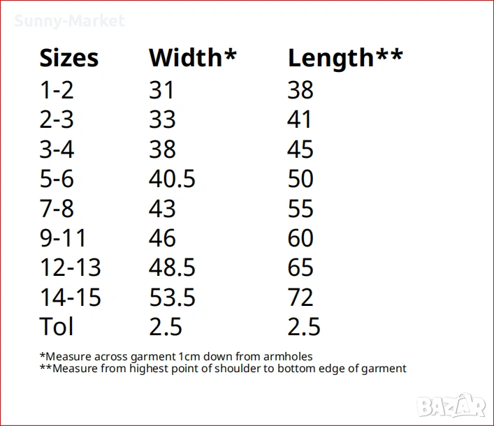 детски размери - от 1год до 16год.
