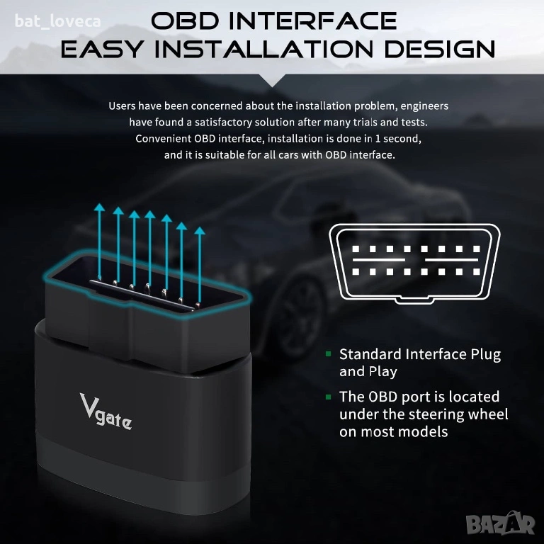 ✔ Напълно съвместим с всички OBD2 протоколи и команди, с уникална функция за автоматично активиране/деактивиране. Работи при 34 mA и автоматично влиза в режим на заспиване при ток до 3 mA, защитавайки живота на батерията на автомобила.