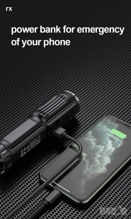 Powerbank функция: Можете да зареждате телефона си директно от фенера чрез USB порта.