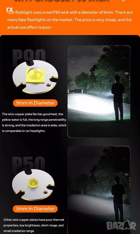 Брутална мощност: Максимална яркост от 2000 лумена с обхват на лъча до 200–300 метра.
