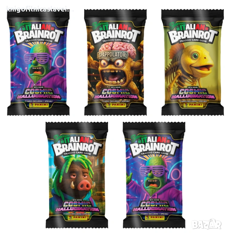 Албумът с оригинално наименование: Panini Skifidol Italian Brainrot - Beta Series Cosmic Hallucination Trading Cards е на цена 5€ (главна снимка).