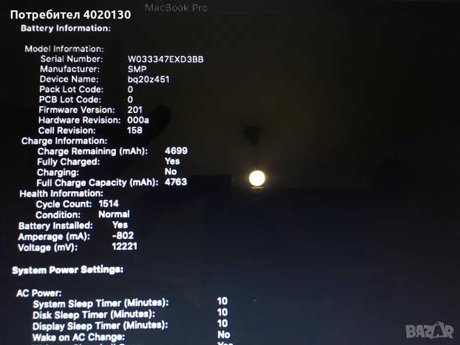 Информация за лаптопа: