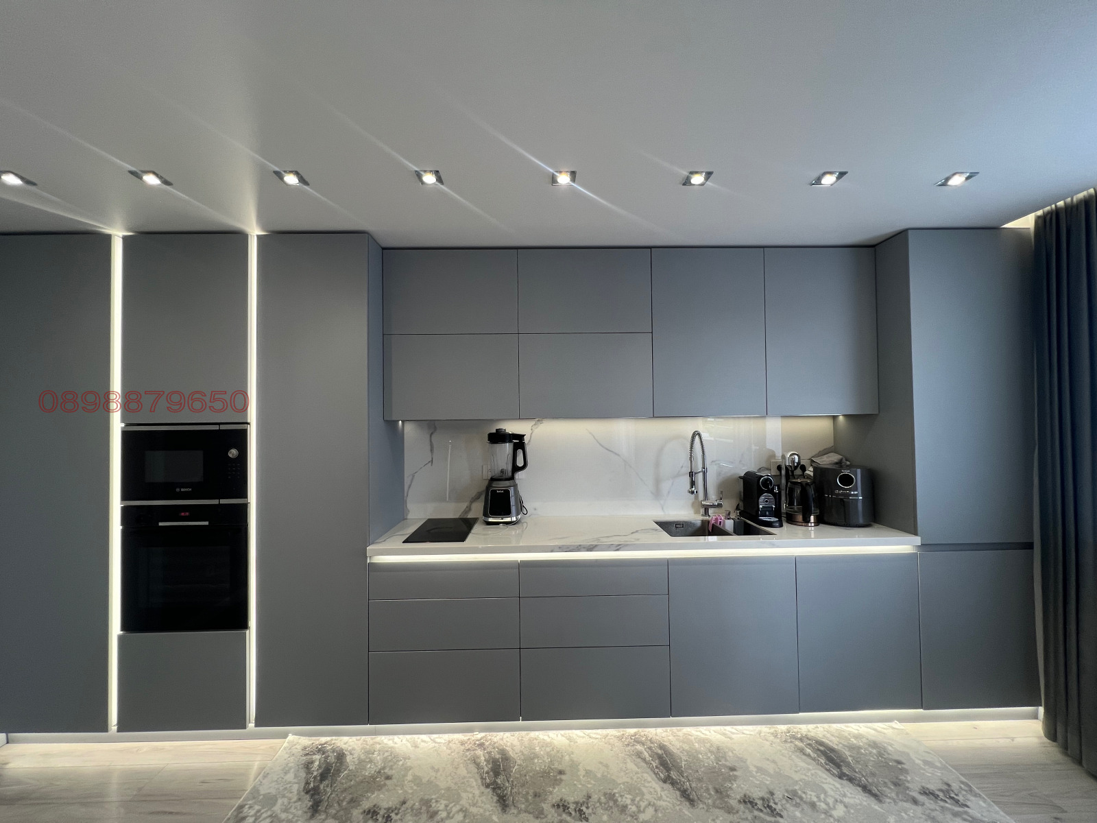 28,5кв поръчкова кухня с много висок клас вградени уреди ( ВСИЧКО Е В ГАРАНЦИЯ) , 4ри вида вградено осветление , многофункционална фурна с телескопични носачи, съдомиялна с wi-fi, ново поколение абсорбатор най-високият клас, камък издържащ до над 300градуса , мдф боя с покритие антипръсти, механизми блум и тн