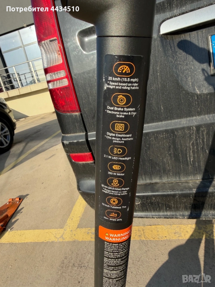 Безшумният и мощен двигател 350 W Ви осигурява динамично управление, което е идеално пригодено за Вашето пътуване до работното място. С максимална скорост, достигаща 25 км/ч и способност да се изкачвате по склонове с наклон до 20%, трябва само да стъпите с два крака и да започнете да управлявате. Наслаждавайте се на заобикалящата среда, без допълнително акустично замърсяване, благодарение на екологичния и безшумен електрически двигател.
