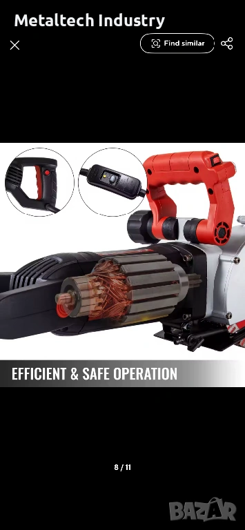 С мощност до 4800 вата, фрезата за стени може да осигури до 6800 оборота в минута, което ви позволява да режете мрамор, бетон, дървен материал и тухли, осигурявайки максимална ширина на рязане от 42 мм и дълбочина на рязане от 34 мм.