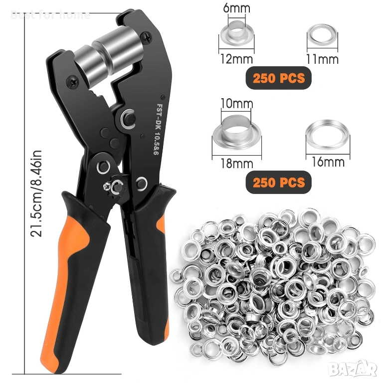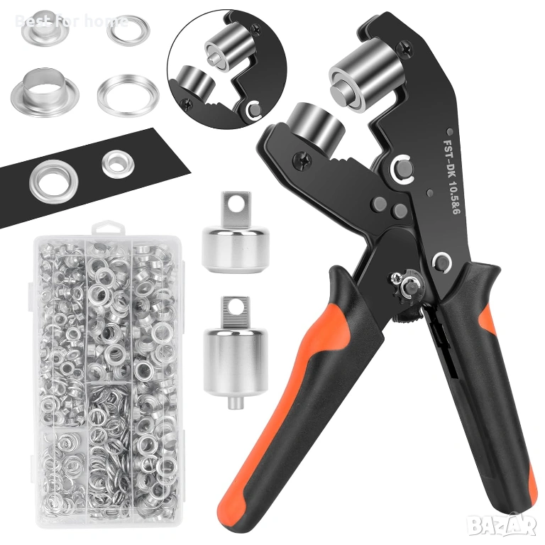 Инструмент за нитове за брезентови капси, Комплекти за брезентови капси с 500 капси (диаметър 10,5 мм и 6 мм), Професионални клещи за нитове за брезент, кожа, картон, PVC плат.