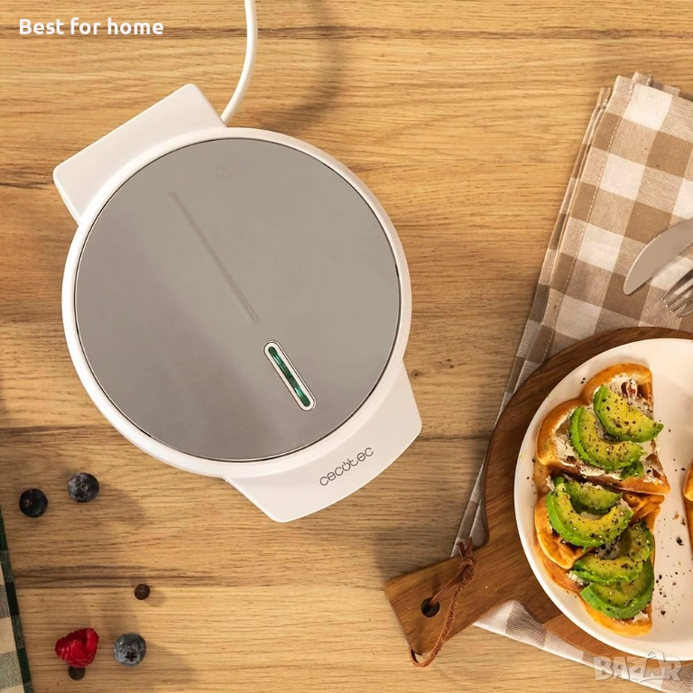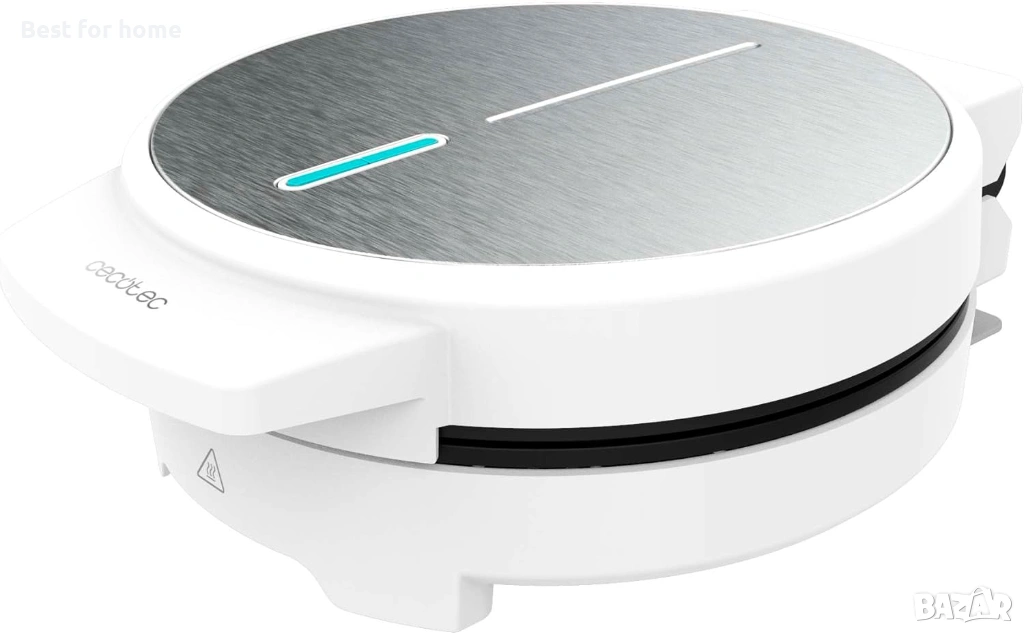 Електрическа гофретница Cecotec Fun Gofrestone с кръгла форма, 1000 W, повърхност от неръждаема стомана, 1-5 гофрети, форма на сърце или 1 голяма гофрета, незалепващо покритие, равномерно готвене, светлинен индикатор.