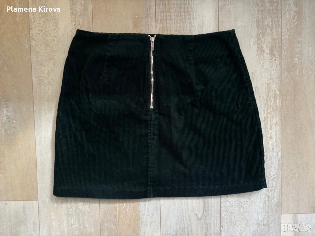 Петролено зелена мини пола | Размер М | Кадифе → Обява 53760505