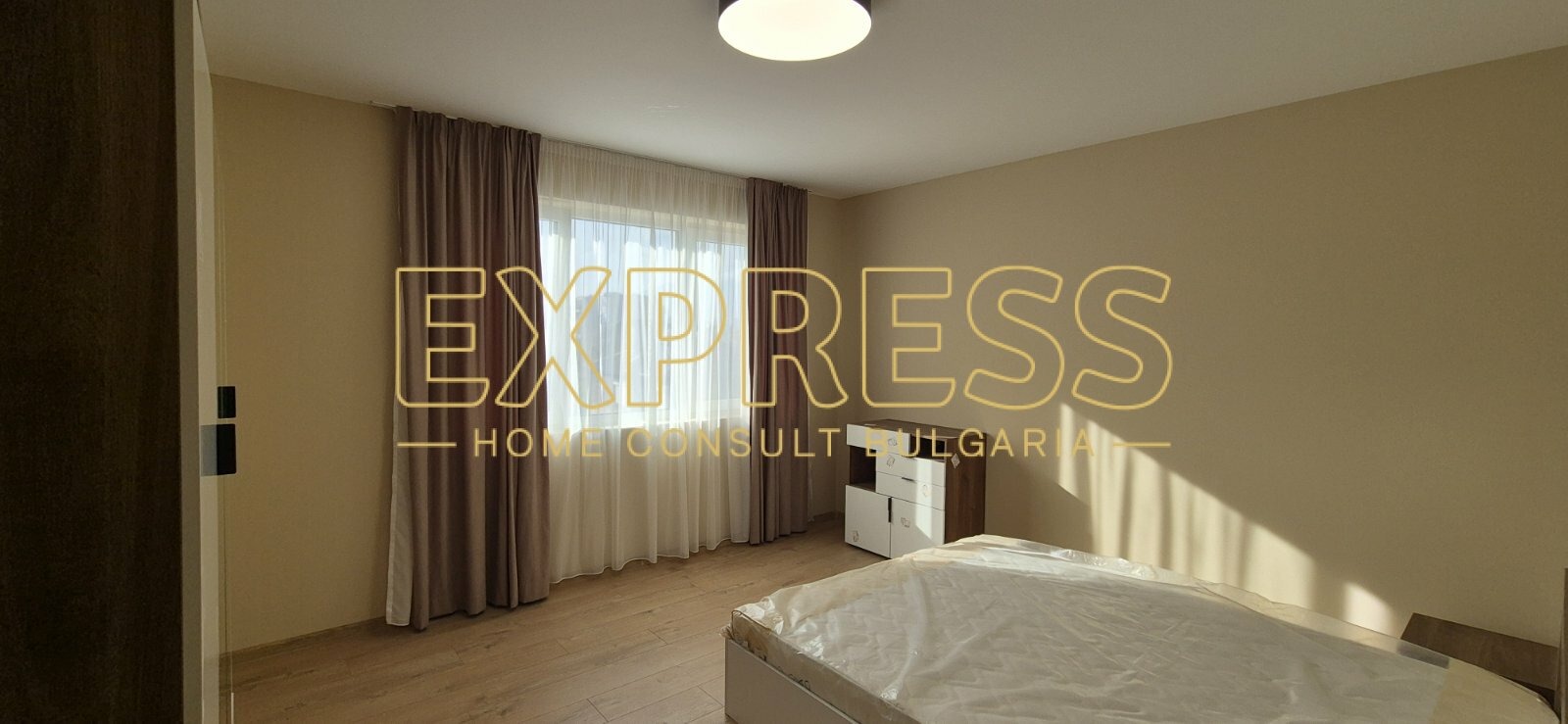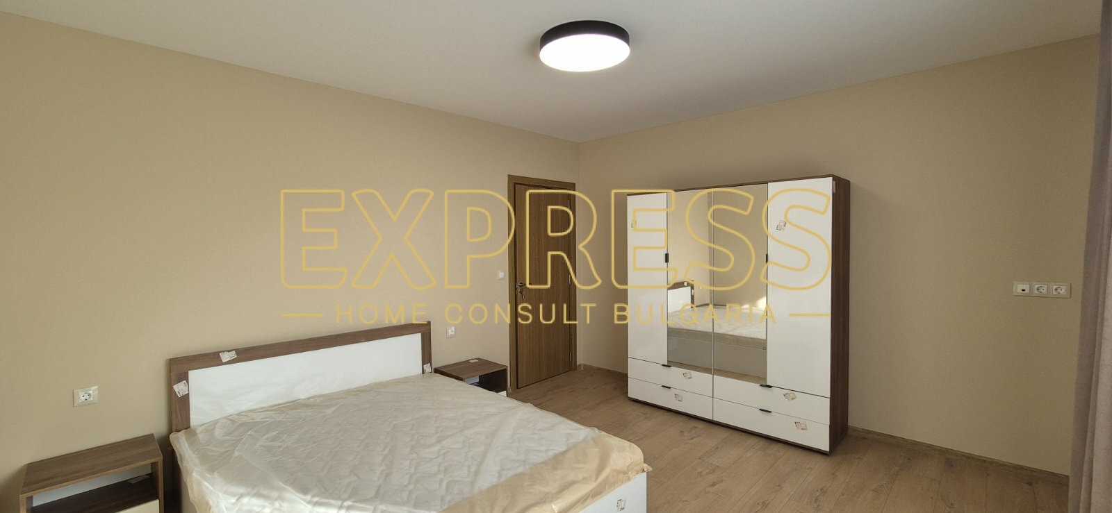 Агенция за недвижими имоти Експрес Дом Консулт България предлага на вашето внимание, светъл, просторен новообзаведен двустаен апартамент в нова тухлена кооперация с АКТ 16, отлично поддържани общи части с контрол на достъпа и зелена площ на изключително комуникативно място в близост до спирки на градския транспорт, магазини, хипермаркети, бизнес и административни сгради, основни пътни артерии. Разпределение : входно антре, хол с кухненски бокс и трапезария, спалня, баня с тоалетна, тераса. Имотът се отдава под наем напълно обзаведен. Модерна кухня с вградени маркови електроуреди, инверторен климатик в дневната. Настилки : под - ламинат, стени - латекс. Отопление и охлаждане - електричество. Апартаментът се намира в нова тухлена кооперация с АКТ 16 от 2025г и отлично поддържани общи части. Предимства : до главни пътни артерии, бизнес и административни сгради, магазини, хипермаркети. Ниски консумативни разходи и много други екстри. ОПЦИЯ ЗА НАЕМАНЕ НА ВЪНШНО ПАРКОМЯСТО С ДОПЪЛНИТЕЛНА УГОВОРКА. ОПЦИЯ ЗА НАЕМАНЕ НА ГАРАЖ С ДОПЪЛНИТЕЛНА УГОВОРКА !!!!!
