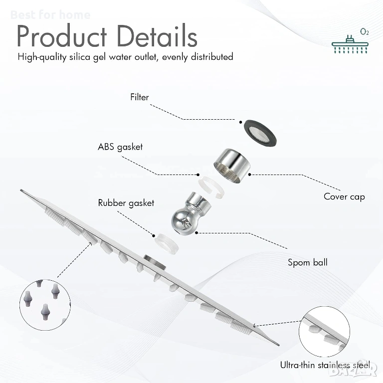 Самопочистващи се дюзи: дюзи против котлен камък, предотвратяващи натрупването на котлен камък, замърсяванията могат лесно да се отстранят от силиконовите дюзи.