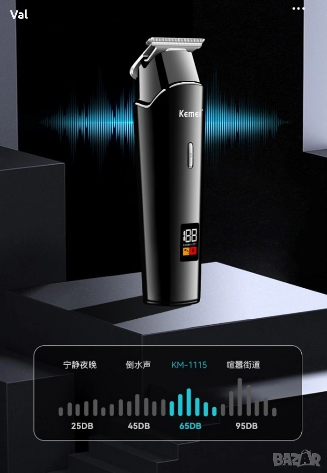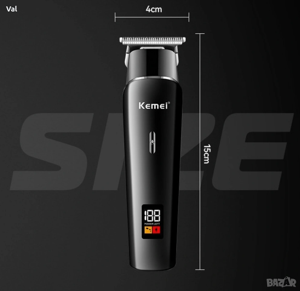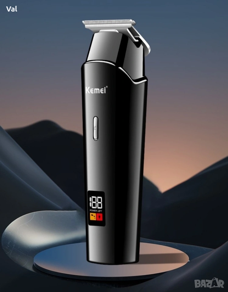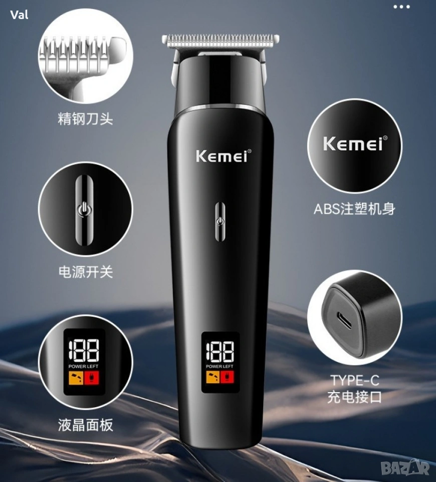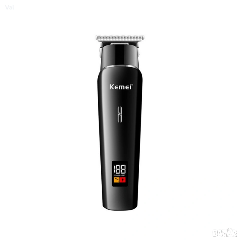 Безжична машинка за подстригване Kemei с LED дисплей / Дълъг живот на батерията / Батерия: Литиевойонна 1200mAh/ Type C /LCD дисплей/ Време за зареждане: 2,5часа/ Време за работа: 120мин / Материал на острието: Неръждаема стомана / Материал на ножа: Фина стомана / Мощност: 5W / Ниски нива на шума: 65 DB