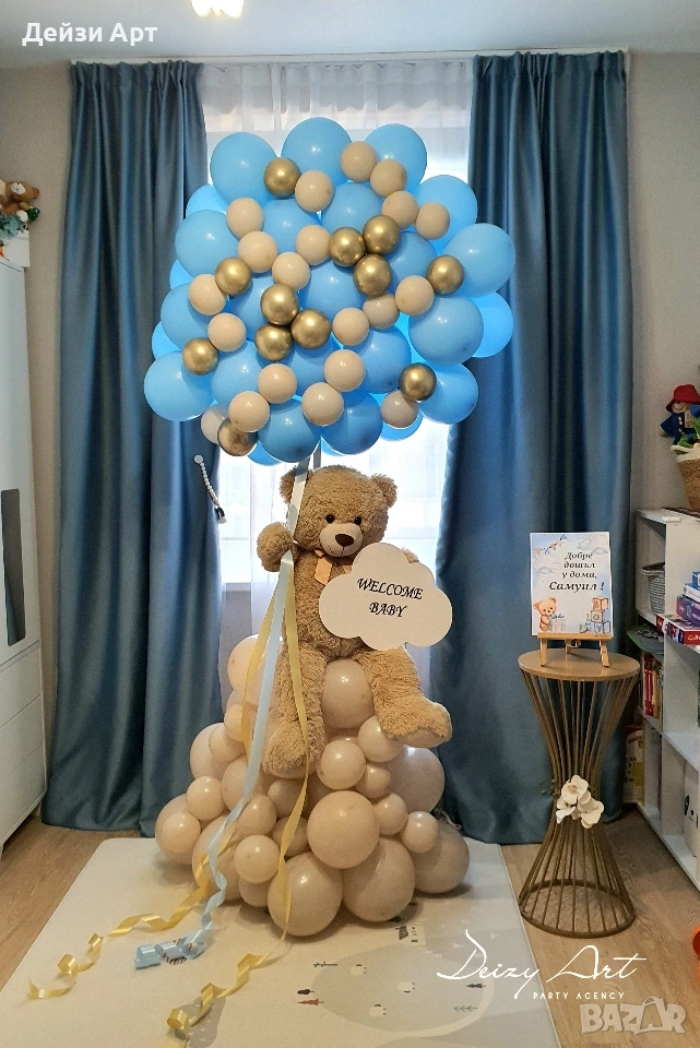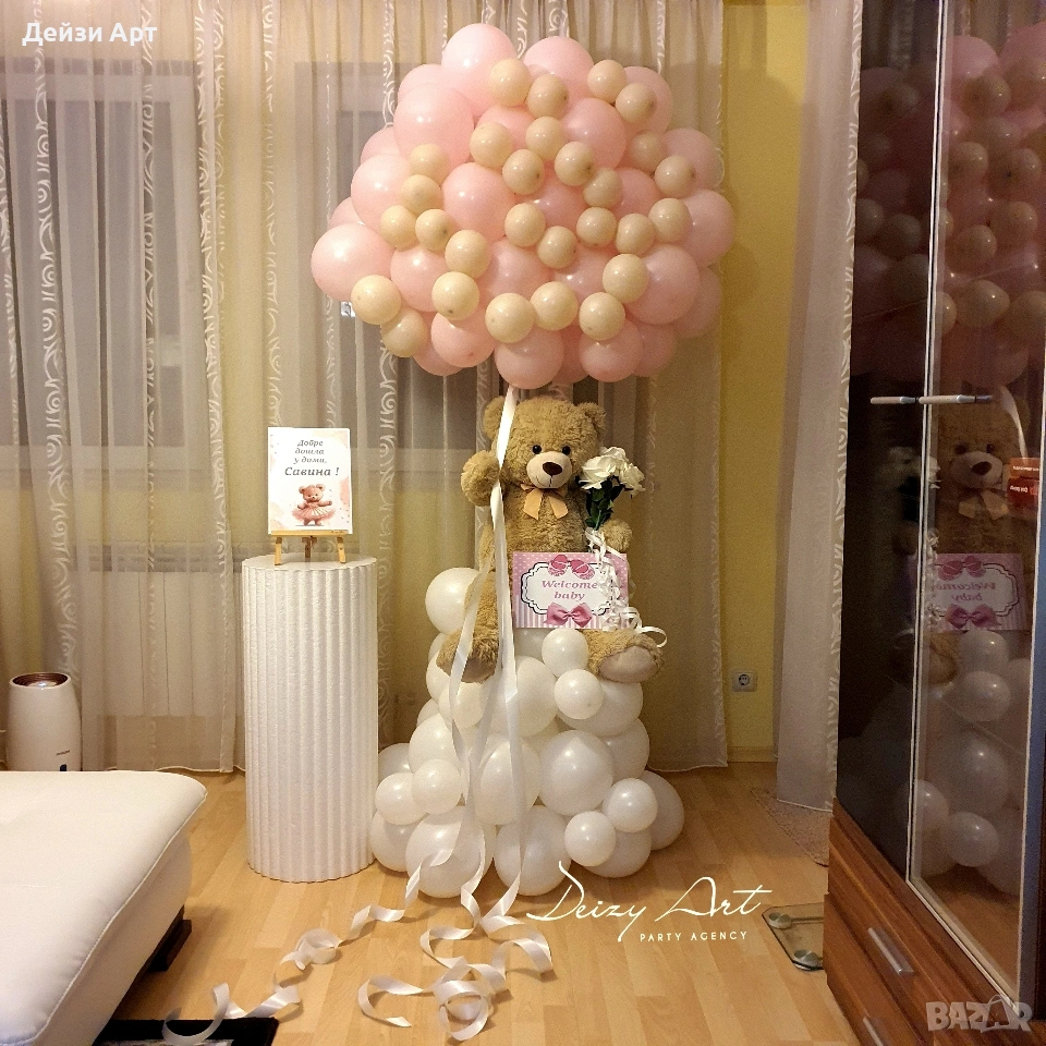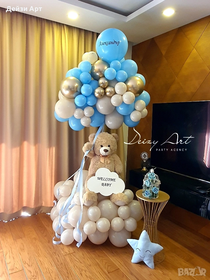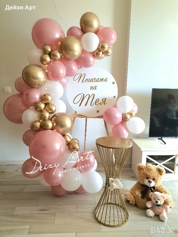 -Украсата е под наем ,монтажа се прави на място от нас и след края на тържеството идваме да съберем украсата.За вас остават само балоните!