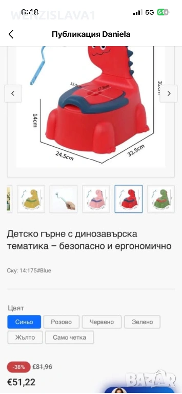 Висококачествена тоалетна за деца с динозаври, изработена от издръжлив PP материал. Ергономично проектирана облегалка за продължителен комфорт и нехлъзгаща се гумена основа за безопасност. Лека и преносима с модерен дизайн.