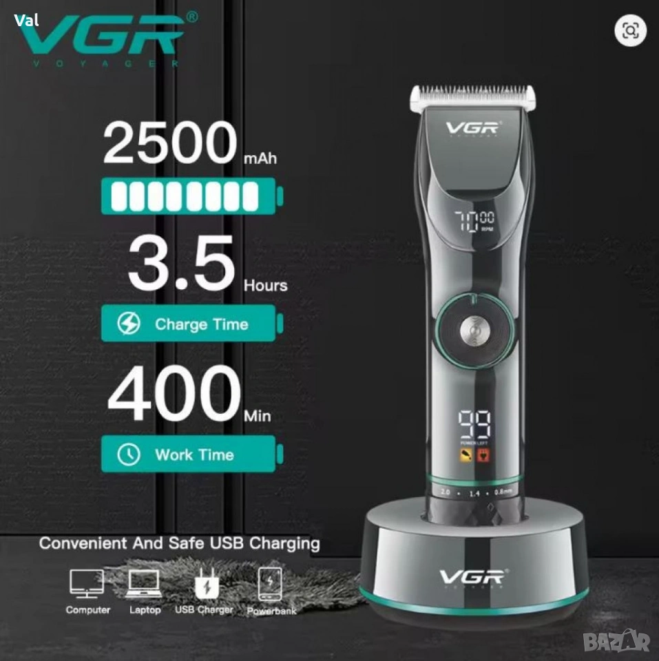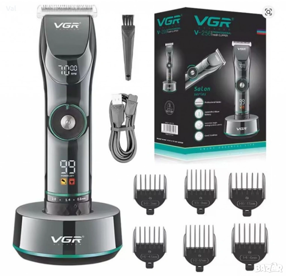 Професионална акумулаторна машинка за подстригване VGR V-256 с LCD дисплей, регулируема скорост