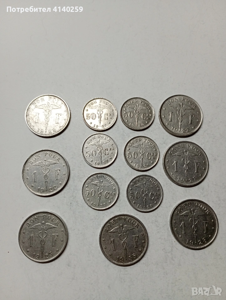 БЕЛГИЯ МОНЕТИ 1 ФРАНК 1922-1923 Г И ДРУГИ ГОДИНИ 50 САНТИМА 1923-1930 И ДРУГИ ГОДИНИ НЕЧИСТЕНИ ЦЕНА ЗА 13 БРОЯ СЪСТОЯНИЕ ОТЛИЧНО ПОЛУЧАВАТЕ СНИМАНИТЕ МОНЕТИ РАЗГЛЕДАЙТЕ ДРУГИТЕ МИ ОБЯВИ ДА КОМБИНИРАТЕ ДОСТАВКА ЕКОНТ ЗА ВАРНА ЛИЧНО