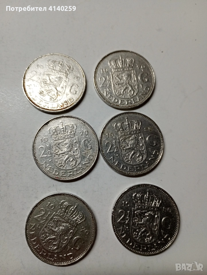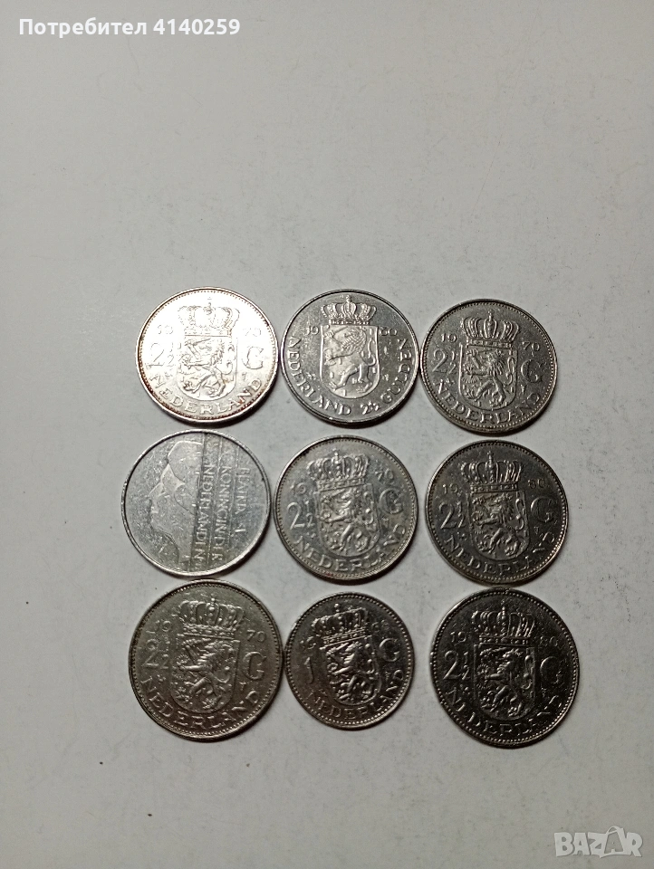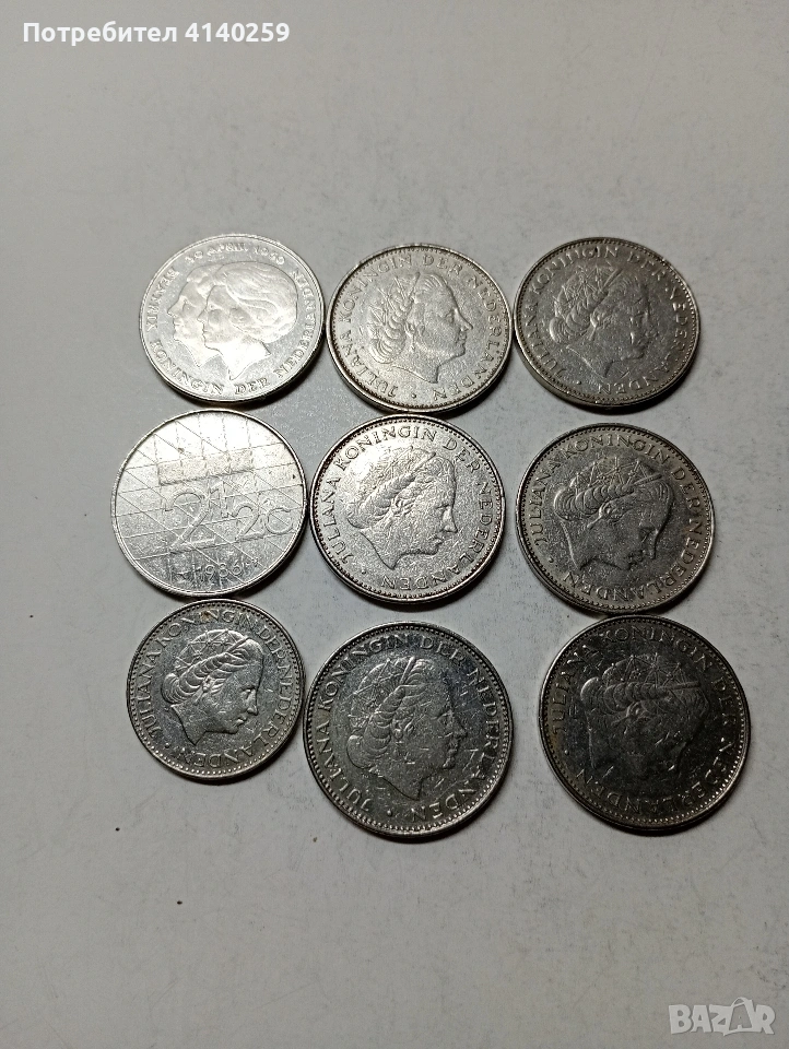 НИДЕРЛАНДИЯ МОНЕТИ 2/1/2 ГУЛДЕНА 8 БРОЯ. РАЗЛИЧНИ ГОДИНИ 1 ГУЛДЕН 1968 Г СЪСТОЯНИЕ ВИДИМО ЦЕНА ЗА 9 БРОЯ ПОЛУЧАВАТЕ СНИМАНИТЕ МОНЕТИ РАЗГЛЕДАЙТЕ ДРУГИТЕ МИ ОБЯВИ ДА КОМБИНИРАТЕ ДОСТАВКА ЕКОНТ ЗА ВАРНА ЛИЧНО