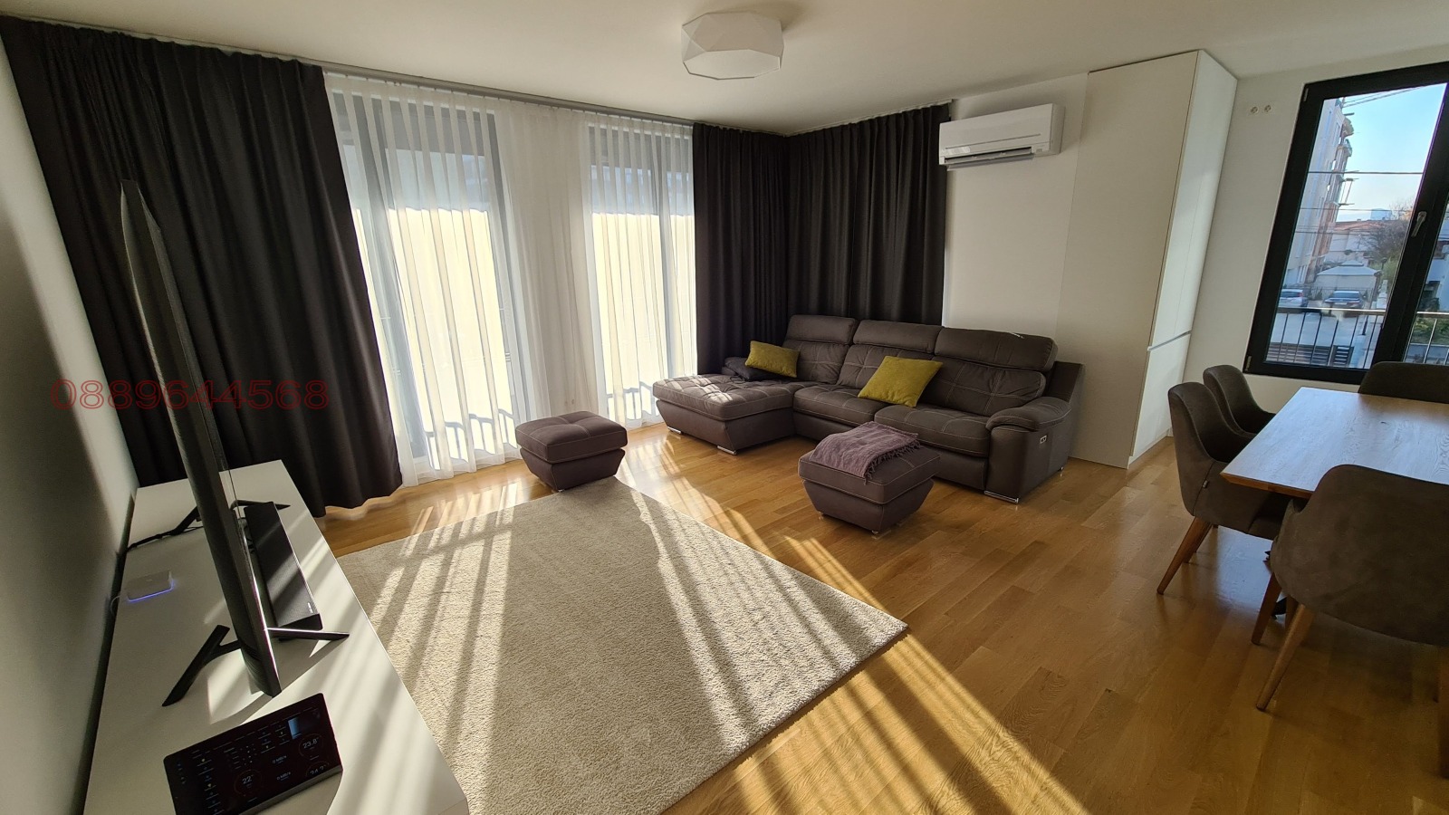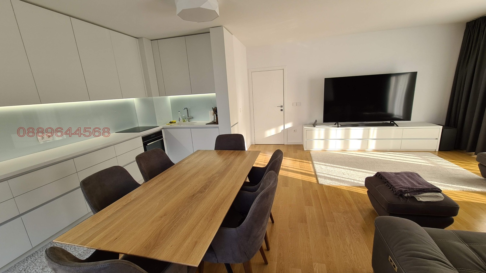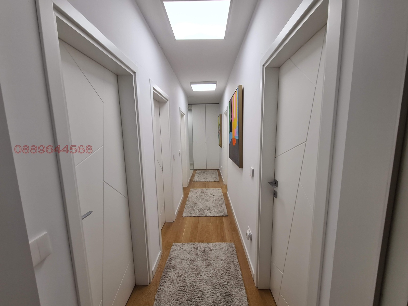 Всичко в апартамента е правено с доста мисъл. В целия апартамент настилката е хубав масивен дъбов паркет. Баните са с италиански гранитогрес 120х60. Плотът на кухнята е от технически камък. Кухнята е МДФ. Два хладилника. 6.5 метра кухня с 5 метра плот. Перално помещение със сушилня и пералня, два огромни гардероба + нормален в едната спалня.