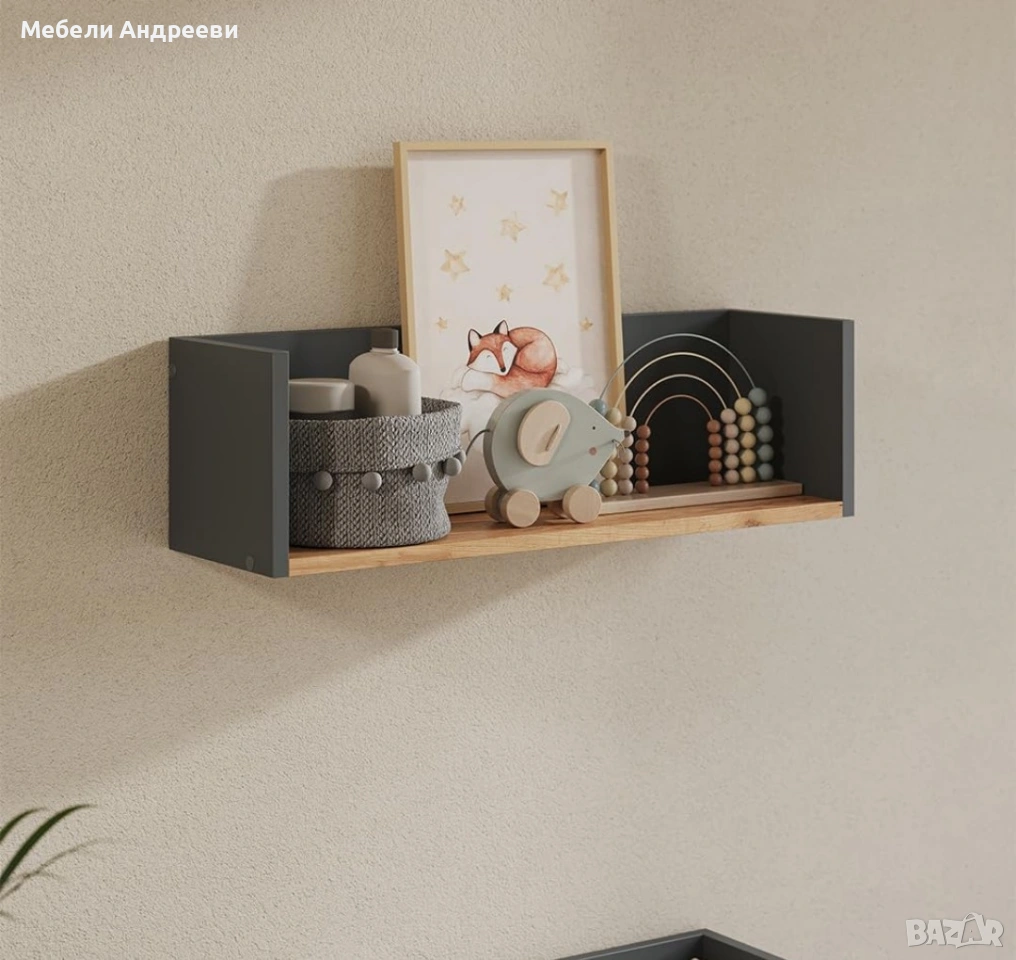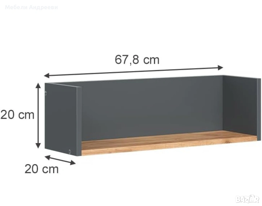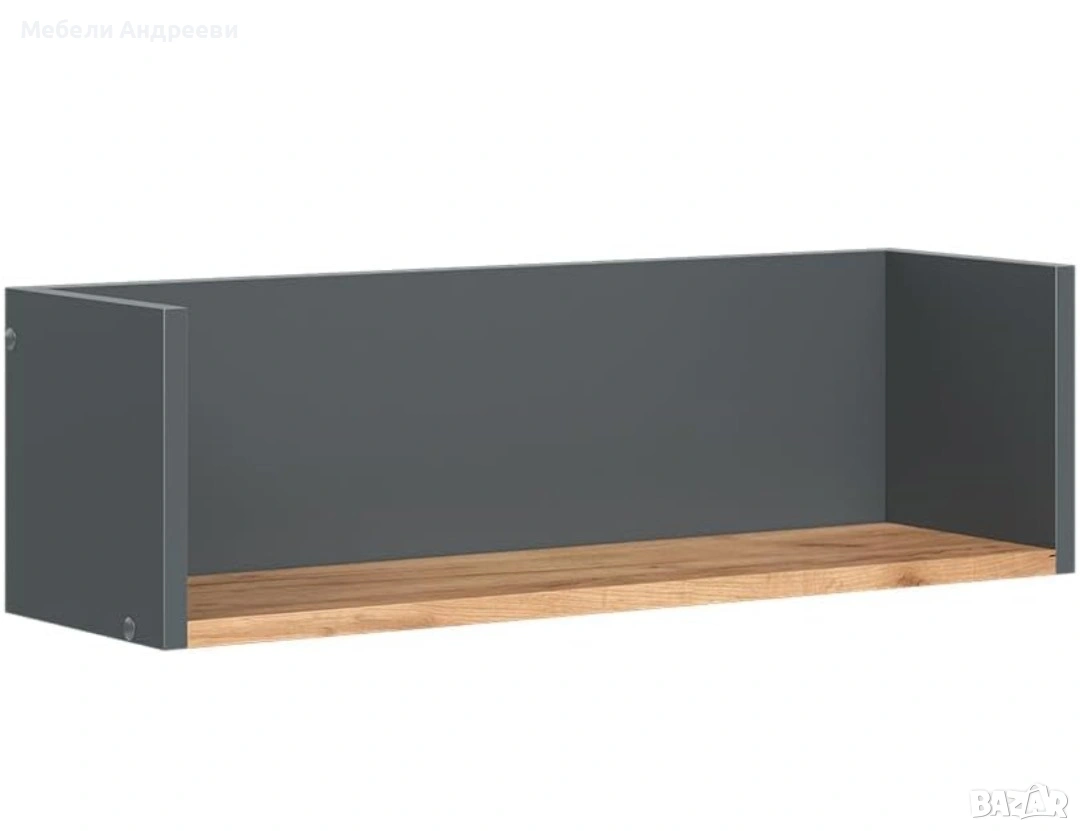 Практичен стенен рафт с модерно комбиниране на графит и дъб арт. Изработен от ПДЧ с меламиново покритие. Идеален за декорации, козметика, детски принадлежности, книги или аксесоари. Стабилен, универсален и подходящ за всекидневна, спалня, детска стая или офис. Лесен монтаж и отлична функционалност.