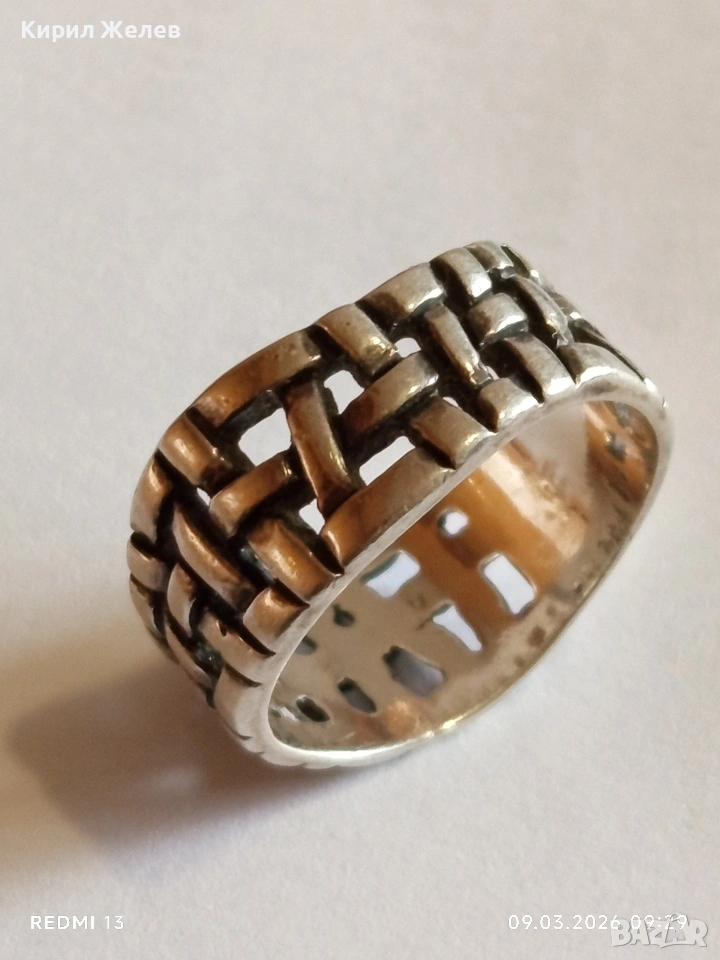 Модерен сребърен пръстен тип халка Арт бижу стил и елегантност 52947