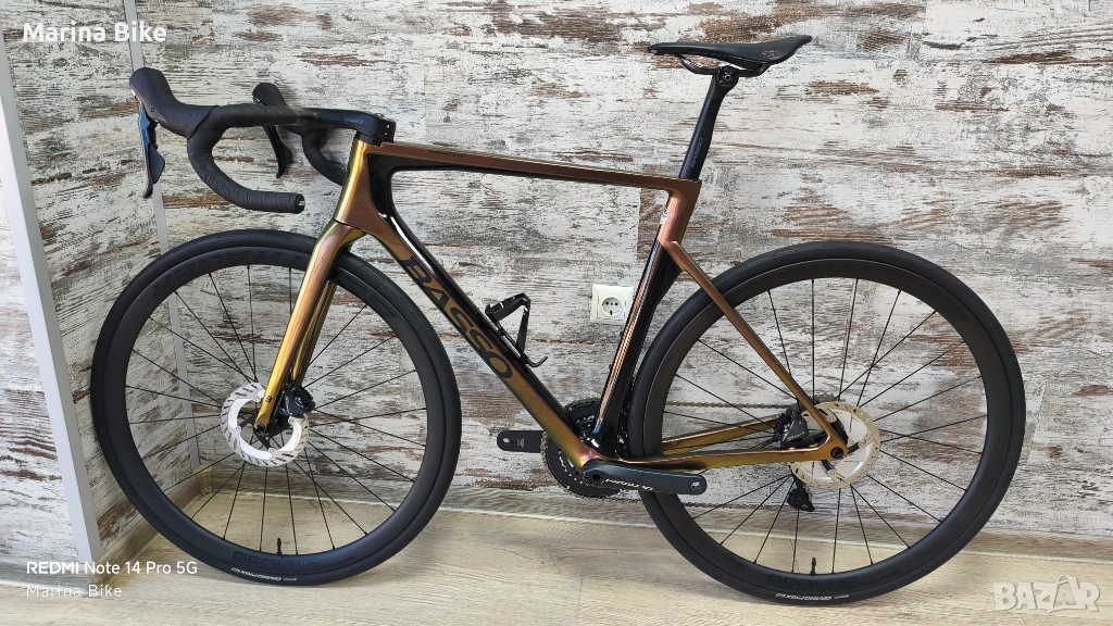 Употребяван карбонов шосеен велосипед Basso Diamante SV Disc, модел 2024 година, в безупречно техническо и много добро визуално състояние. Велосипедът е сглобяван по индивидуален проект, оборудван с пълен механичен монтаж 2х11 скорости Shimano