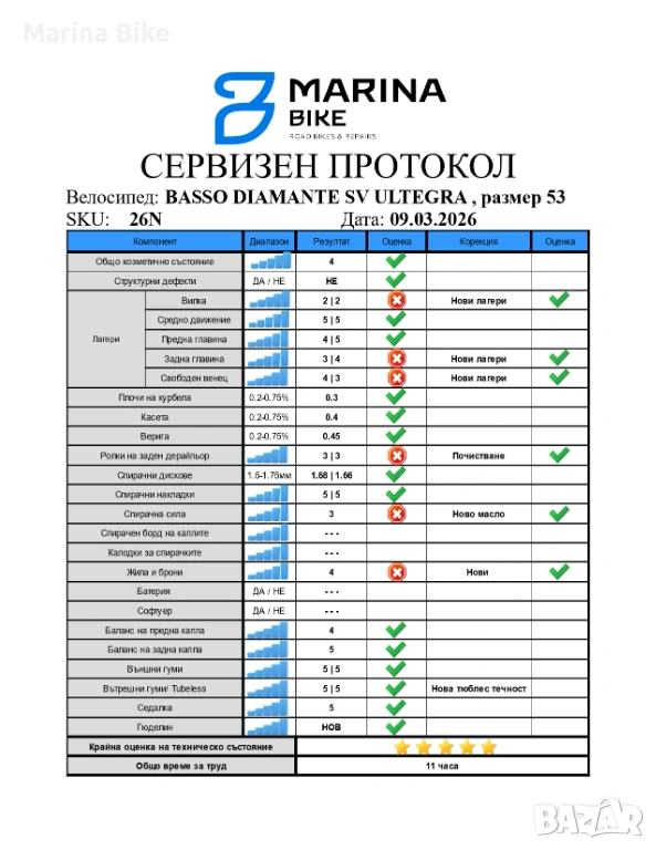 Велосипедът е без нужда от допълнителни разходи след покупката, с пълна техническа гаранция за срок от 6 месеца, доказваща липсата на скрити дефекти и износени компоненти.