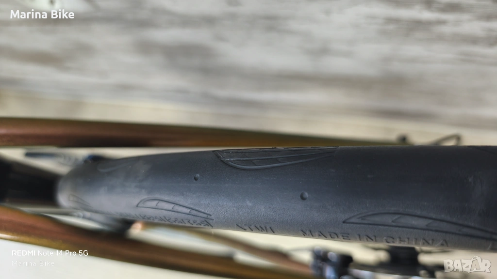 Рамката е без удари и падания, с някои одрасквания от транспортиране и козметична забележка зад курбела от заклещена верига, без пукнатини или структурно увреждане на карбона.