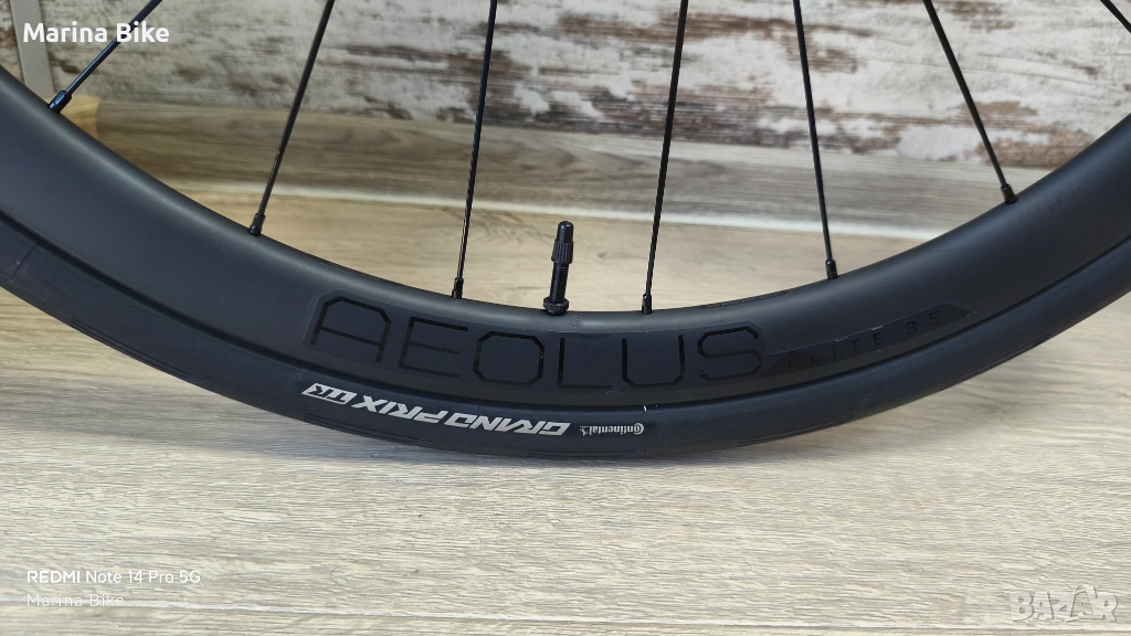 15. Капли - Bontrager Aeolus Elite 35, карбонови, 622x21, Tubeless Ready, без удари и луфтове, със чисто нови лагери на задната главина и боди, с перфектен ход, с дребни одрасквания ;