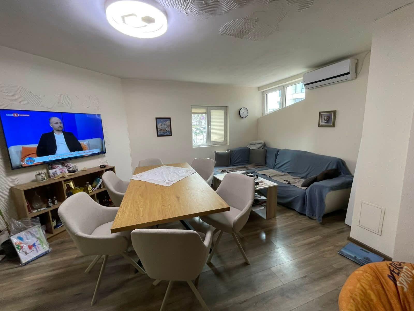 Апартаментът е обзаведен и готов за нанасяне, с отопление на ток чрез климатик.