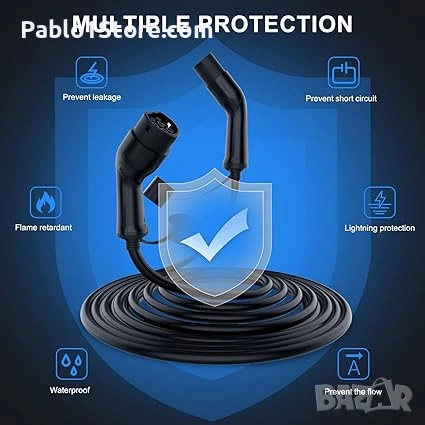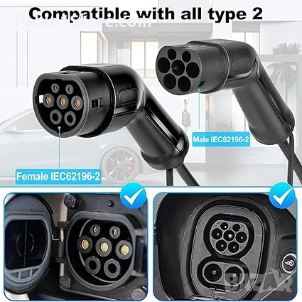 - [Съвместим] Зарядният кабел е съвместим с обществени и частни 32A зарядни станции. Съвместим с електрически превозни средства тип 2 (IEC 62196) и хибридни превозни средства тип 2. Ако е необходимо да зареждате вашия автомобил тип 2, сравнете с I-Pace, EQC, i3, Leaf, e-Golf, e-Up, CITIGOe iV, Kuga PHEV, Fortwo, A250e, Kona EV, Soul EV и др.