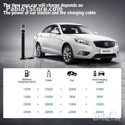 - Забележка: За 32A 22KW, моля, имайте предвид, че вашата връзка към захранването и връзката към захранването на превозното средство съответстват на 3 фази 32A 22KW. Ако едно от тези две ограничения е 16A и 3.6kW, ще бъдете захранвани с максималния ток, който имате. Необходима ви е система с достатъчно напречно сечение на кабела и повече от перфектно заземяване.