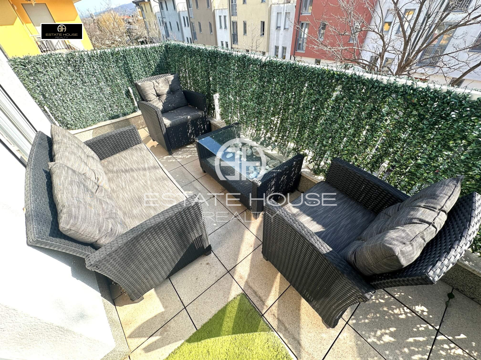 От имота се разкрива панорамна гледка към вътрешния двор на комплекса и към градската панорама на София. Локацията е изключително комуникативна в близост до Sofia Ring Mall, IKEA и Околовръстен път, както и срещу Бизнес Парк София, което осигурява бърз достъп до основни бизнес и търговски зони в града.