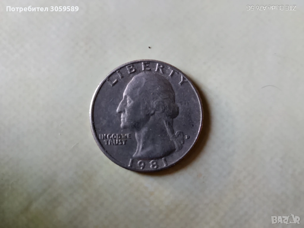 Quarter Dollar от 1981г. Получавате монетата от снимките. Може и по еконт.