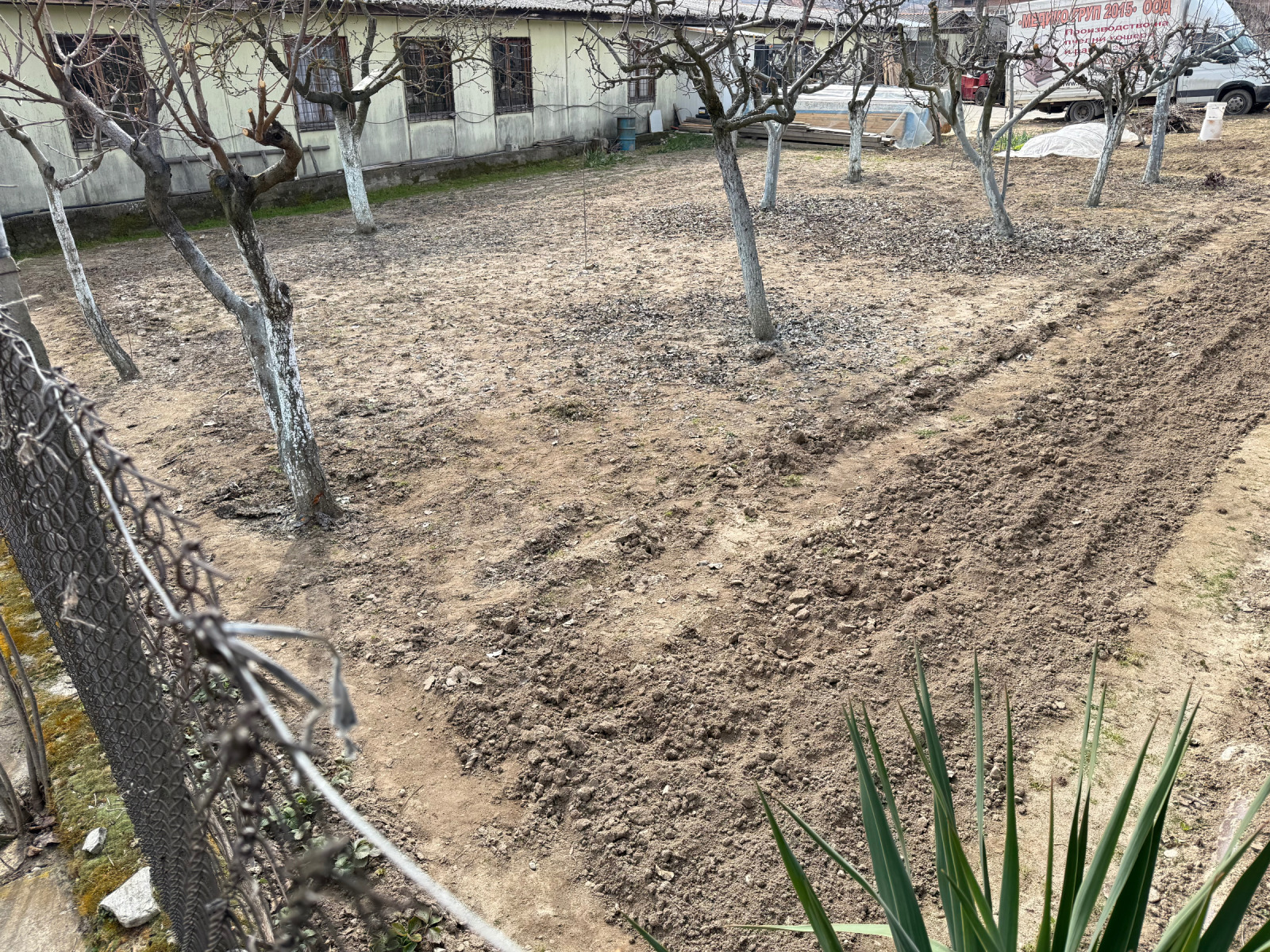Дворът е облагороден с множество плодни дръвчета, а законната масивна пристройка е с нов навес и е пригодена за складиране и отглеждане на животни.
