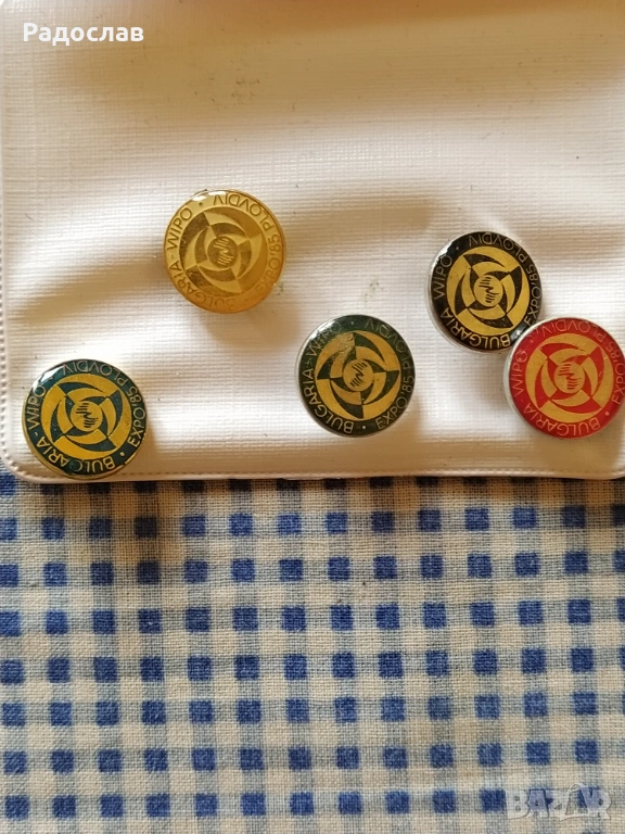 5 броя значки Световна изложба " " " " WIPO " Пловдив 1985 г.