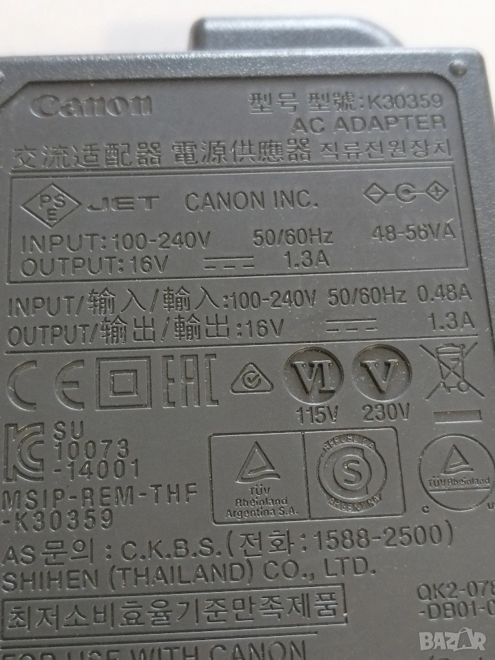 Захранващ Адаптер CANON K30359 16V/1.3A → Обява 53763149