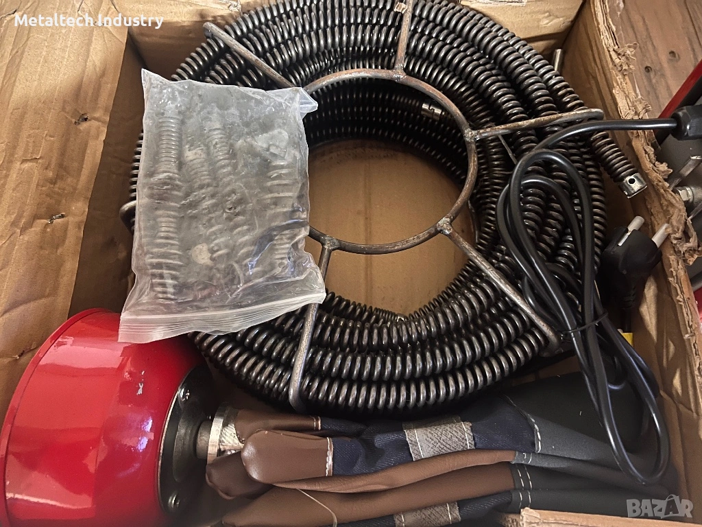 Машини за отпушване на канали с мощност 900W и пълен комплект оборудване към нея.